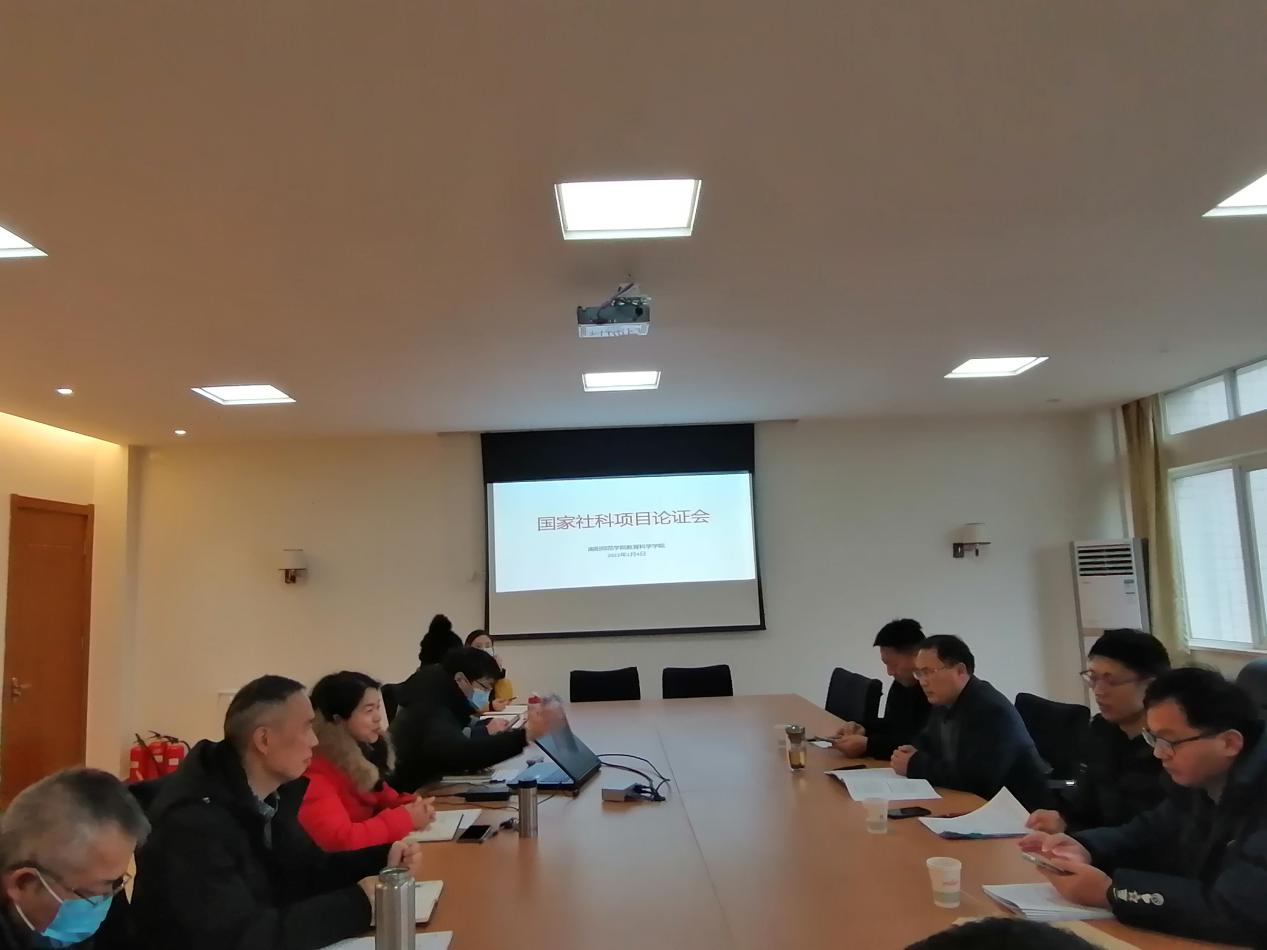 2022年1月4日上午,教育科学学院举行2022年度国家社科项目申报论证会。社科处处长王春阳,外国语学院院长李长亭,文学院院长龚世学,期刊部副主任袁善来,教育科学学院院长李辉、副院长马福全,以及相关的博士、副高职称教师参与了论证会。李辉主持会议。