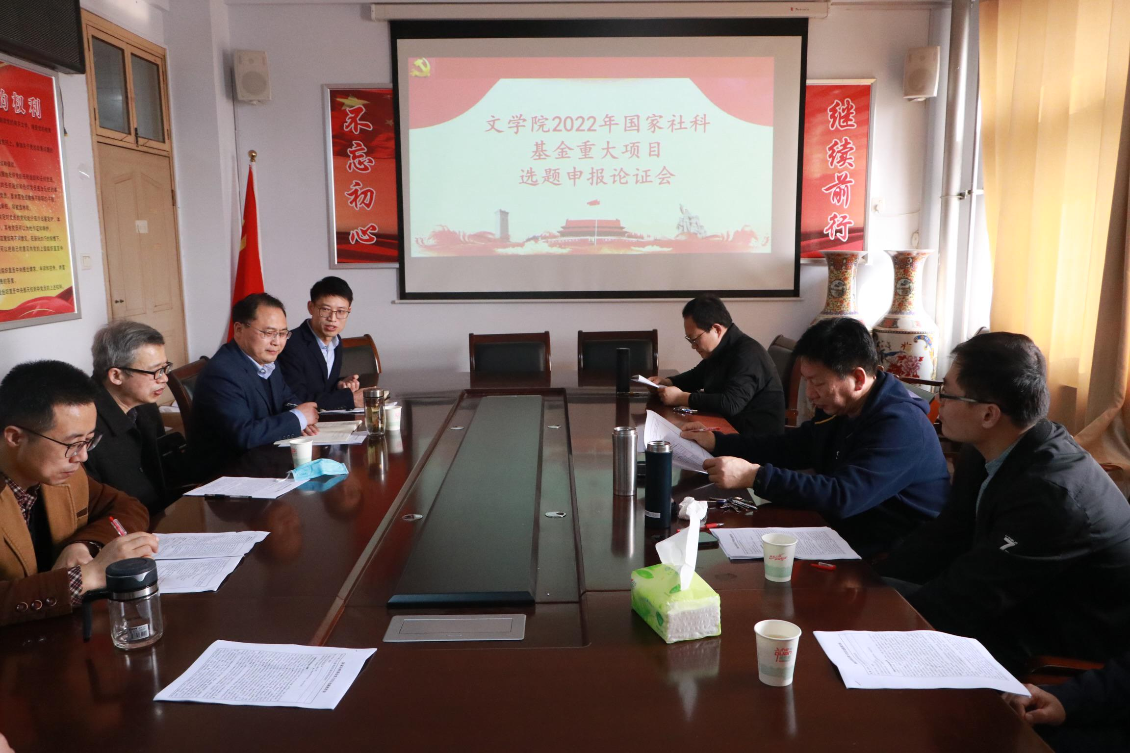 本网讯(通讯员 田煜)3月13日,文学院在逸夫楼311会议室举行2022年国家社科基金重大项目选题申报论证会。重大项目申报首席专家刘克教授、社科处处长王春阳、文学院院长龚世学、期刊部副主任袁善来、文学院副院长牛清波、文化产业研究院院长李敦庆、卧龙特聘教授张培阳和王学军等专家参加。牛清波主持论证会。