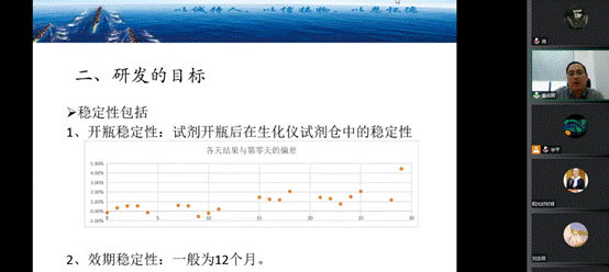 第七场报告专家是行业专家吕海沧总监,吕海沧总监首先介绍了威尚生物技术(合肥)有限公司简况,特别讲解了以脂蛋白a和总胆固醇试剂为例介绍体外诊断试剂盒的技术标准和研发思路。