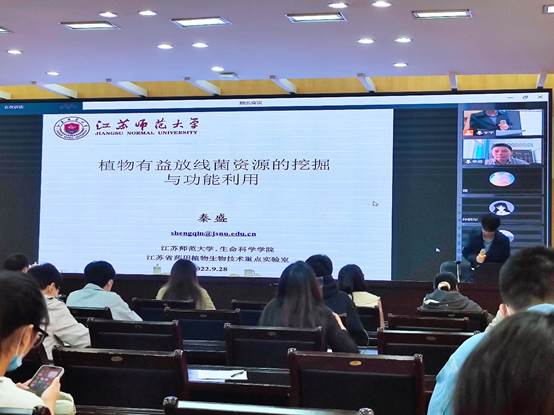 第二场报告专家是秦盛教授,秦盛教授介绍了以放线菌资源研究的意义,特别讲解了植物内生与根际放线菌促进植物生长与盐胁迫耐受及其互作机制、及其在甘薯病害防控中的应用等研究工作。