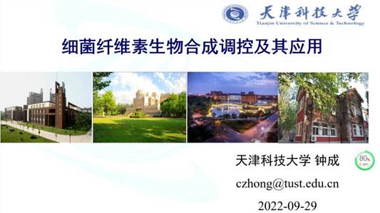 第四场报告专家是钟成教授,钟成教授以细菌纤维素合成相关研究为题,介绍特别讲解了细菌纤维素的合成生物学创新应用等研究工作。