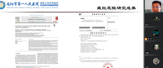 第五场报告专家是行业专家徐全晓主任,徐全晓主任介绍了南阳第一人民医院及省肿瘤实验室简况,随后介绍了中药成分藏红花酸应用于肺辐射防护的研究。