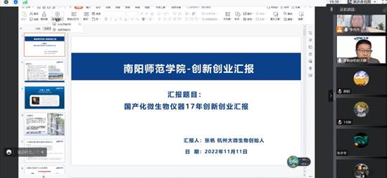 本网讯(杨树琼 文/图)11月11日,生命科学与农业工程学院企业家专场学术报告会通过线上方式召开。杭州大微生物技术有限公司总经理杨帆、南京生物工程学会理事长杨涛应邀作学术报告。报告会由现代生物技术研究院院长李丹丹主持,生命科学与农业工程学院部分教师和研究生参加了报告会。