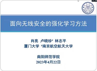 肖亮教授在报告中介绍了面向无线安全的强化学习方法,利用分层架构、安全探索及迁移学习解决现有技术存在的优化速度慢、安全性能差和短期安全风险等难点。此外,肖亮教授还分享了在强化学习、深度学习方面开展科学研究的经验等。