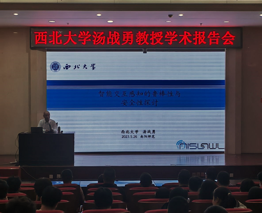 本网讯(通讯员 贾晓)5月26日,应计算机科学与技术学院邀请,西北大学汤战勇教授为8803威尼斯检查中心师生分别作了题为“智能交互感知的鲁棒性与安全性探讨”和“如何做好科研和研究生培养工作”的报告。计算机科学与技术学院部分师生参加了报告会,副院长马晓普主持报告会。