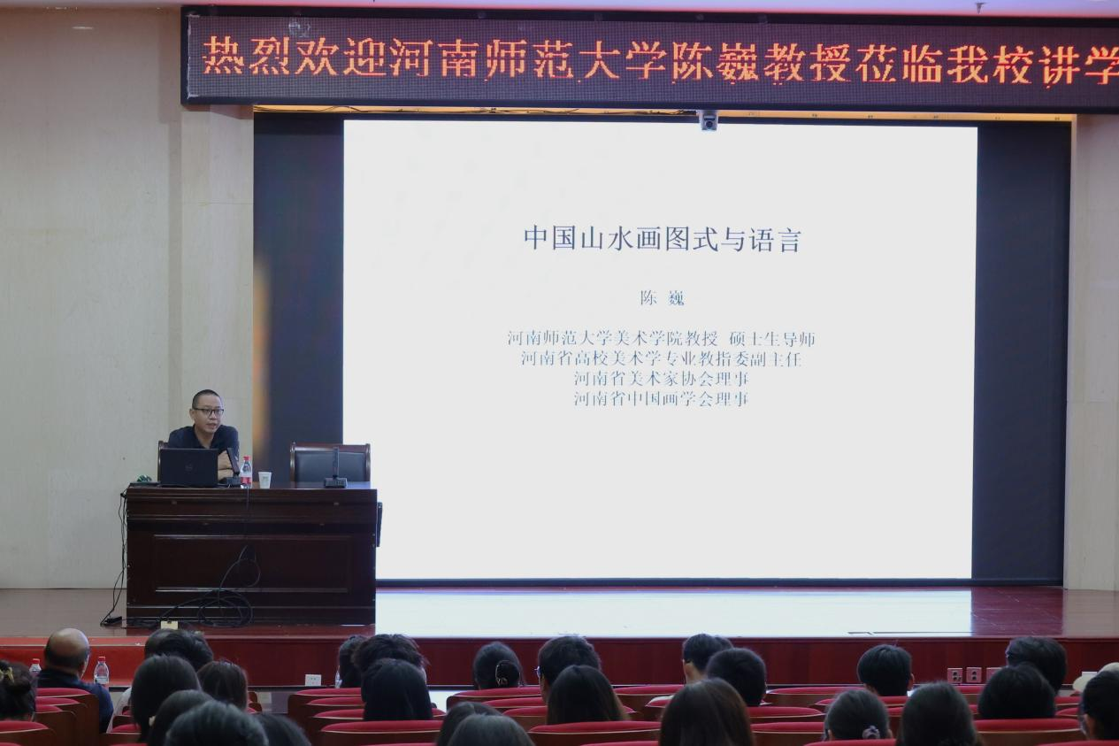 本网讯(通讯员 李淑淑 生哲函)6月9日下午,河南师范大学美术学院院长陈巍教授应邀在西区图书馆一楼报告厅举行题为“中国山水画图式语言的流变”的学术报告。美术与艺术设计学院副院长陈晅嵘主持,该院200余名师生参加。
