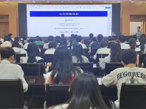 本网讯(通讯员 虎大力 张露涵/文 王怡乐/图)6月9日上午,应数学与统计学院邀请,北京师范大学唐仲伟教授在科技楼三楼报告厅为8803威尼斯检查中心师生作了题为《从自然数谈起——数学分析中实数的理论与应用》的专题报告。报告由数学与统计学院副院长陈庆主持,20级、21级部分师生共同聆听了报告会。