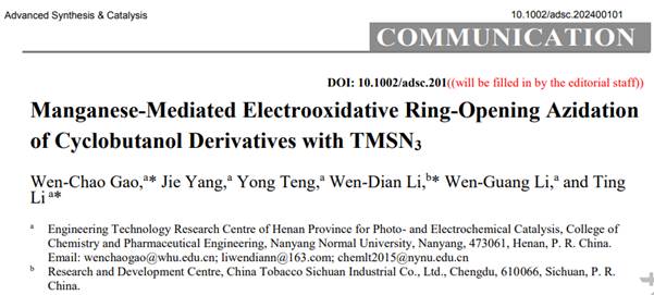 有机叠氮化合物,特别是烷基叠氮化合物作为多用途的构建块,已被广泛应用于多种合成反应。由于它们的高反应性和显著的生物活性,发展高效合成叠氮化合物的方法受到了化学家们的广泛关注。本研究开发了一种锰/电催化下环丁醇的开环叠氮化反应。该方法适用于多种环丁醇,在无化学氧化剂的反应条件下,可以以中等至优异的的收率得到实用的γ-叠氮酮。该成果发表于化学领域著名期刊Advanced Synthesis & Catalysis,且当选为封面论文,高文超博士为第一兼通讯作者,李文典博士和李亭教授为共同通讯作者,8803威尼斯检查中心为第一通讯单位。