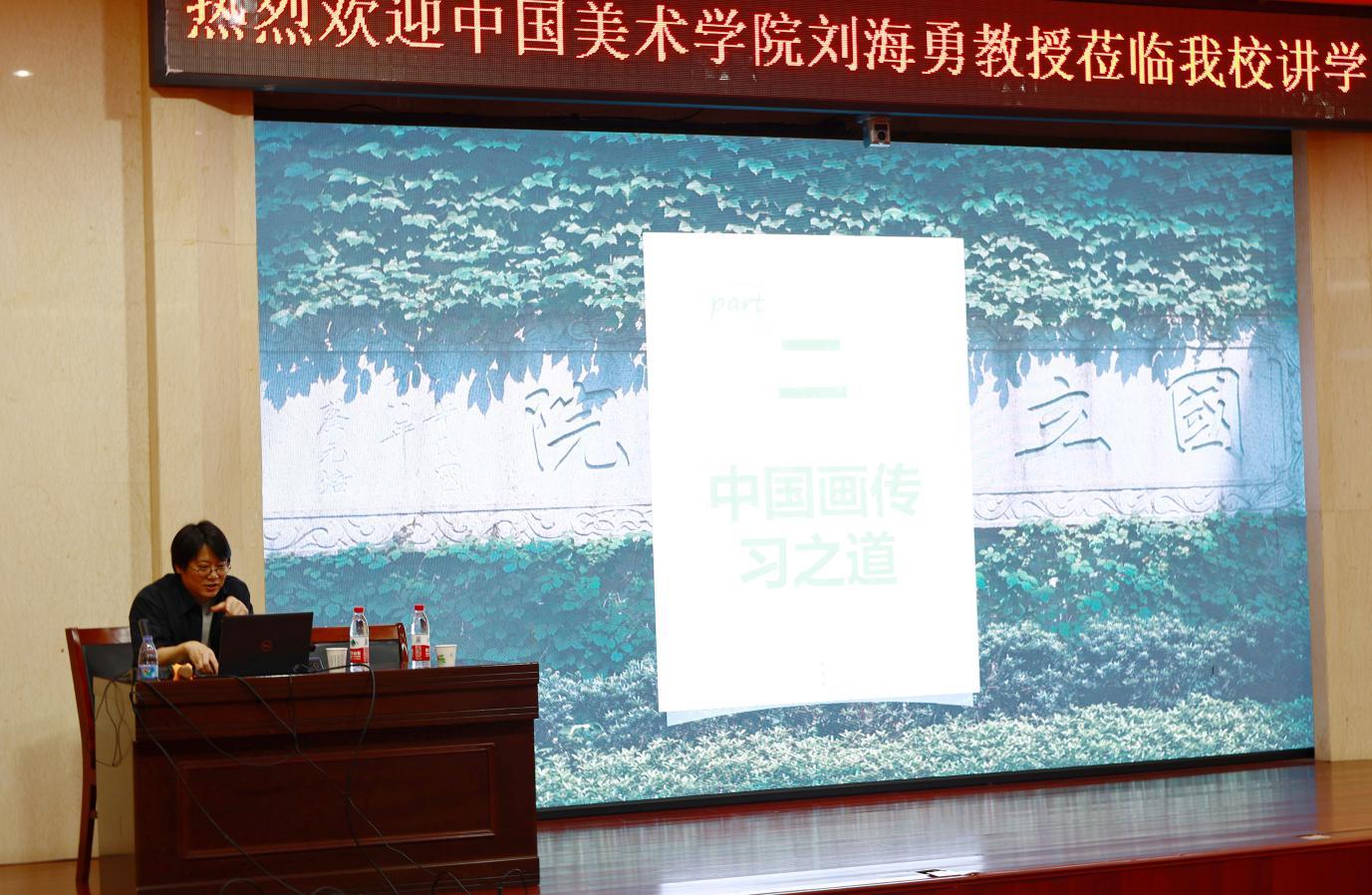 本讯网(曹娜/文 赵中嘉/图)6 月 26 日下午,中国美术学院刘海勇教授应邀来校作题为“中国画写意体系及其传习之道”学术报告。报告会由美术与艺术设计学院院长曹天成主持。美术与艺术设计学院领导班子、相关专业师生代表200余人参加。