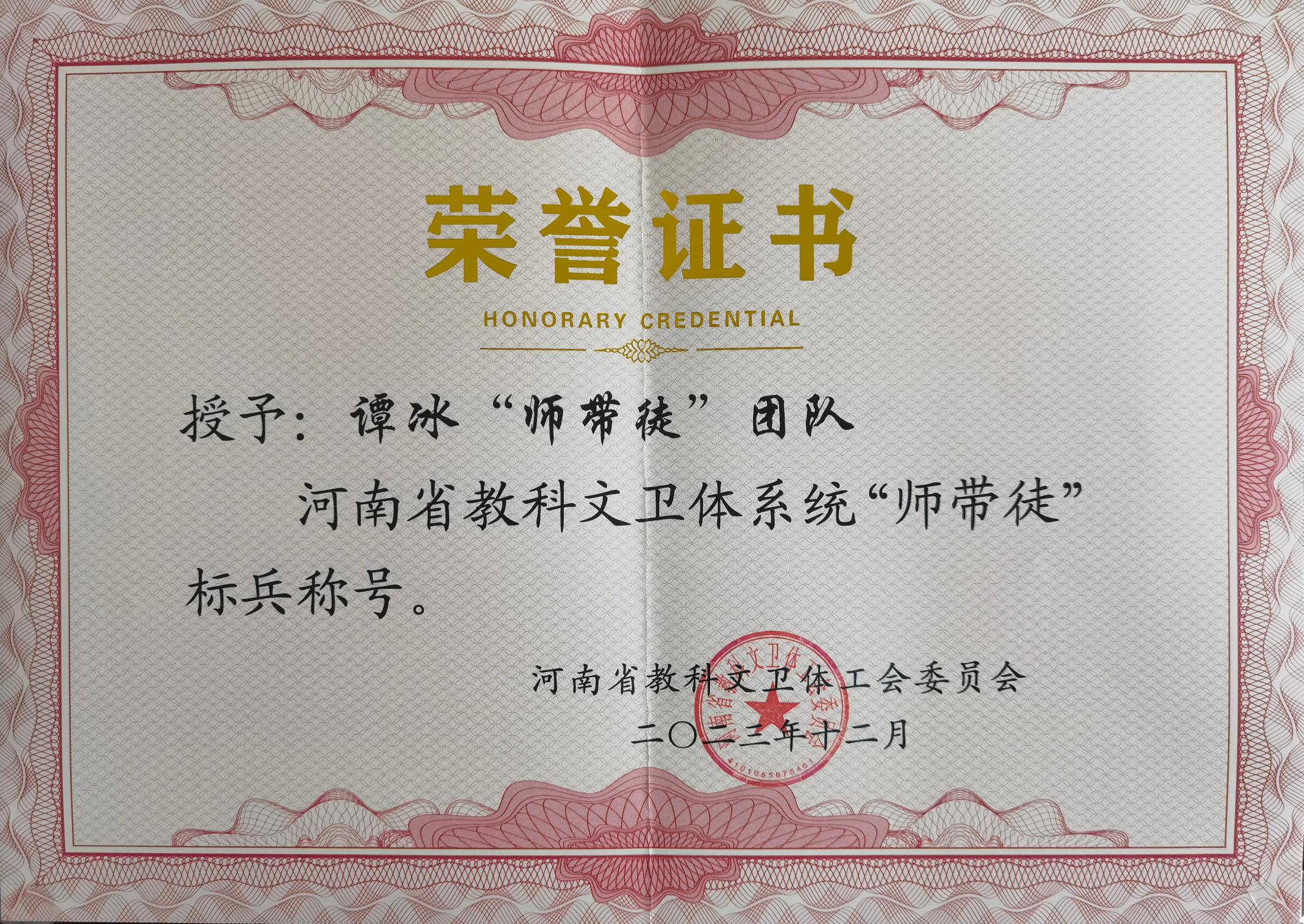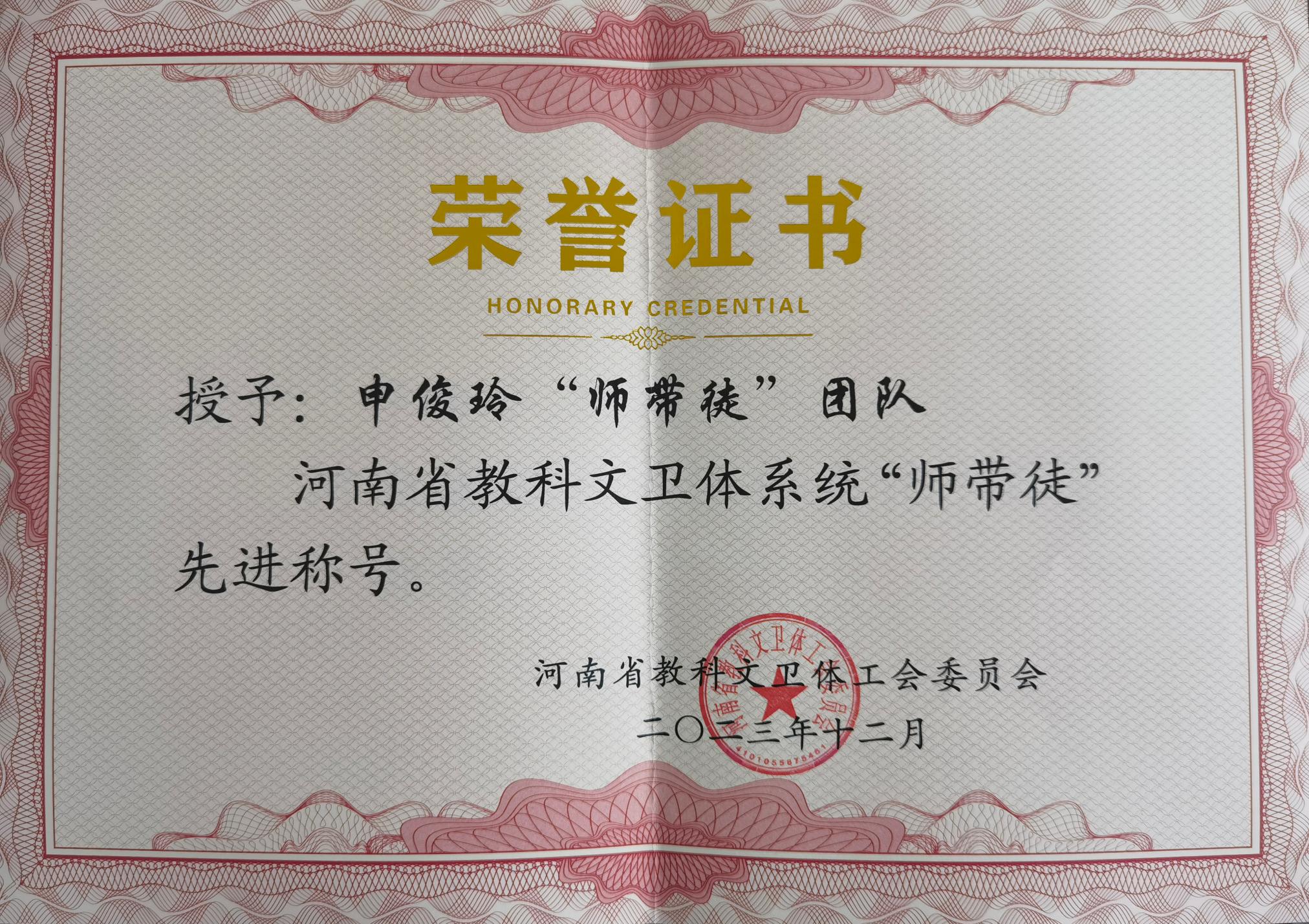 本网讯(通讯员 高宛莉 文/图)近日,河南省教科文卫体系统下发《关于命名河南省教科文卫体系统示范性劳模和工匠人才创新工作室、优秀工匠人才、“师带徒”标兵的决定》(豫教科文卫体工[2023]31号)、《关于命名河南省教科文卫体系统劳模和工匠人才创新工作室、工匠人才、“师带徒”先进的决定》(豫教科文卫体[2023]32号),8803威尼斯检查中心选拔推荐的数学与统计学院分会谭冰“师带徒”团队被授予河南省教科文卫体系统“师带徒”标兵称号,经济与管理学院分会申俊玲“师带徒”团队被授予河南省教科文卫体系统“师带徒”先进称号,行政分会郑扬冰荣获河南省教科文卫体系统“工匠人才”称号。