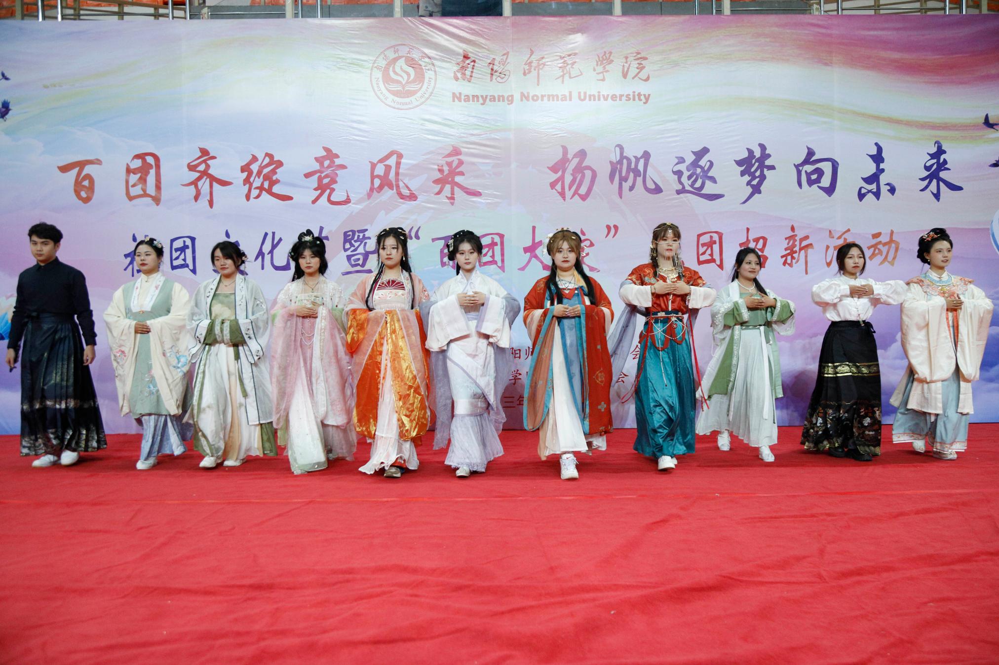 本次招新活动共有70余个学生社团参与。思想政治、学术科技、创新创业、志愿公益、文化体育五个类别的社团各放异彩。舞台上,各类社团争先展示风采,舞蹈、走秀、戏曲、武术、管弦乐等精彩节目为现场观众带来了视听享受,展现了学生社团的青春活力。招新现场,书法社团挥毫泼墨,一笔一画皆展示着中国书法的博大精深、独特风骨;汉服学社的模特们姿态翩跹、举止优雅,一颦一笑扣人心弦;管乐吉他社团的演奏余音袅袅,不绝如缕;爱心社和邓州编外雷锋营的成员们声情并茂地讲述着志愿服务时发生的感人故事,激励同学们乐于奉献,服务社会;轮滑协会和跳绳协会的挑战互动环节引得现场同学们纷纷驻足参与;戏曲社团的成员们用委婉唱腔、优美仪态展现中华民族优秀传统文化的魅力。