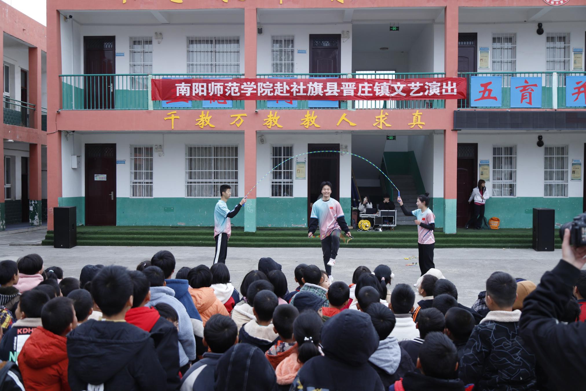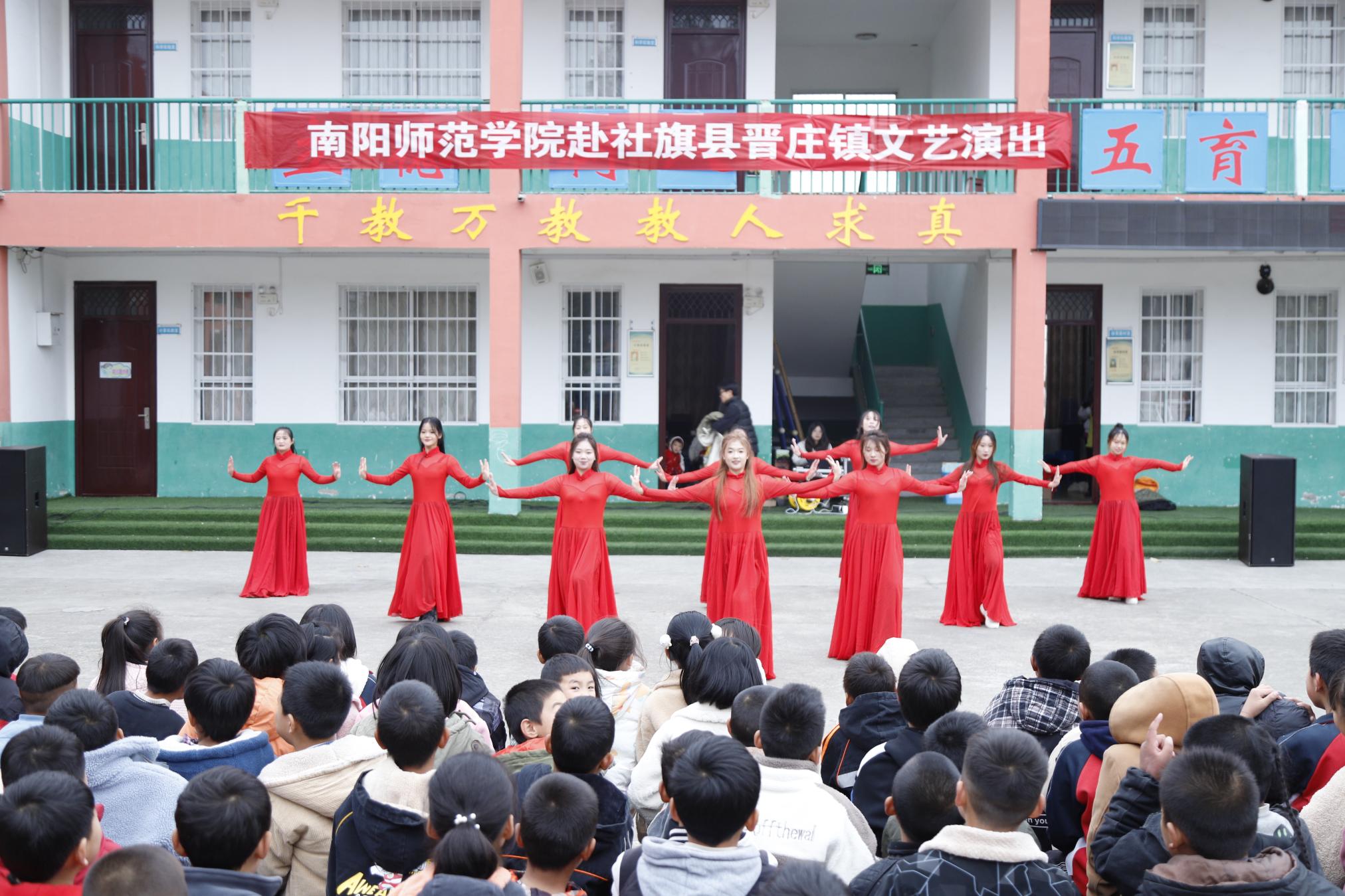本网讯(杨眉 刘思灼/文 杨雨梦 刘思灼/图)11月10日,校团委负责同志带领大学生艺术团及学院志愿者代表赴社旗县晋庄镇万营小学开展校地帮扶文艺演出。社旗县副县长、晋庄镇党委书记张建洋等当地领导参加。