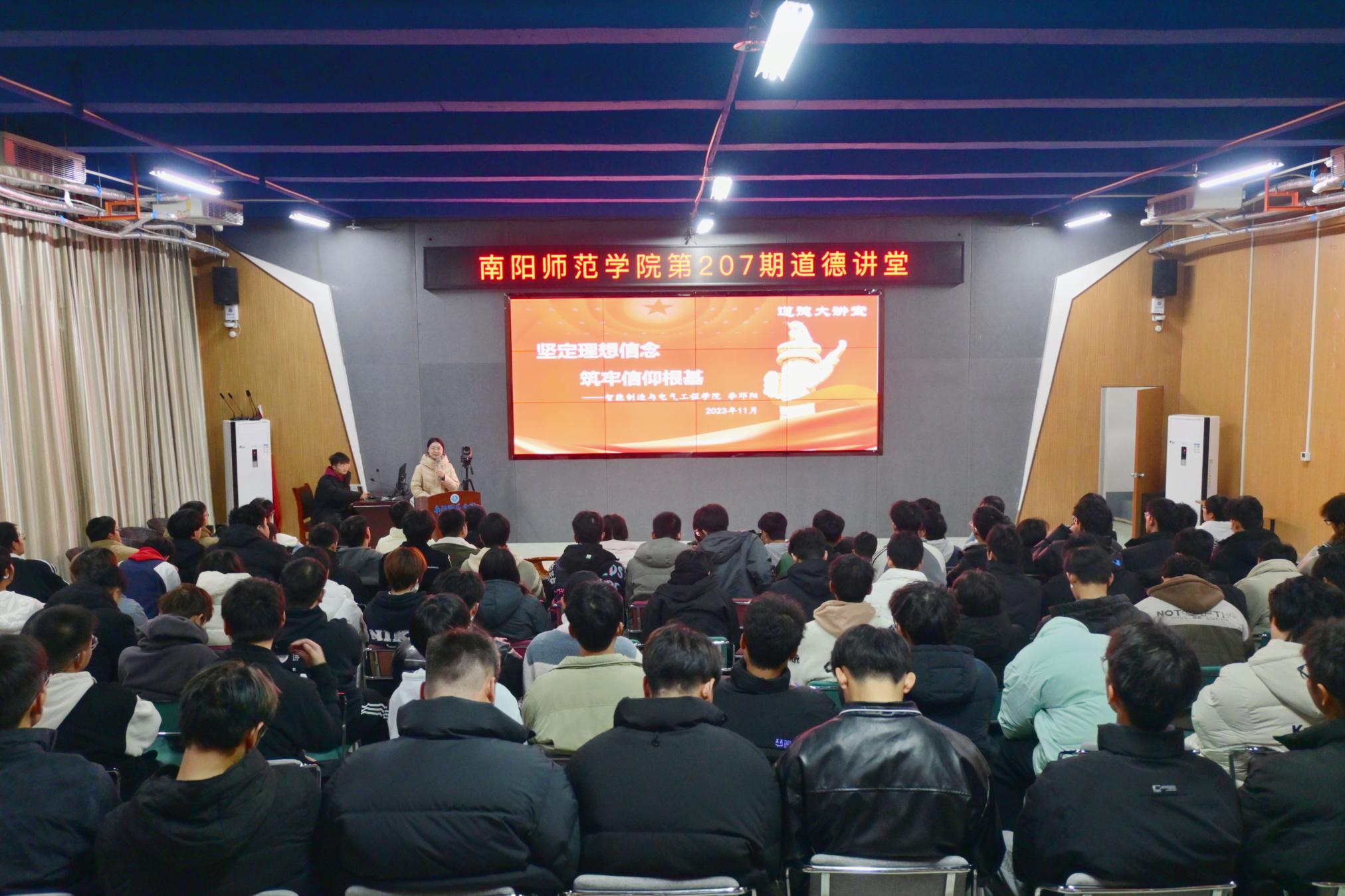 本网讯(徐曼曼/文 郑宇棋/图)11月26日,8803威尼斯检查中心以“坚定理想信念筑牢信仰根基”为主题的第207期道德讲堂在实训楼4203举办。本次活动由智能制造与电气工程学院2023级辅导员李邓阳老师担任主讲。该院2023级学生参加。