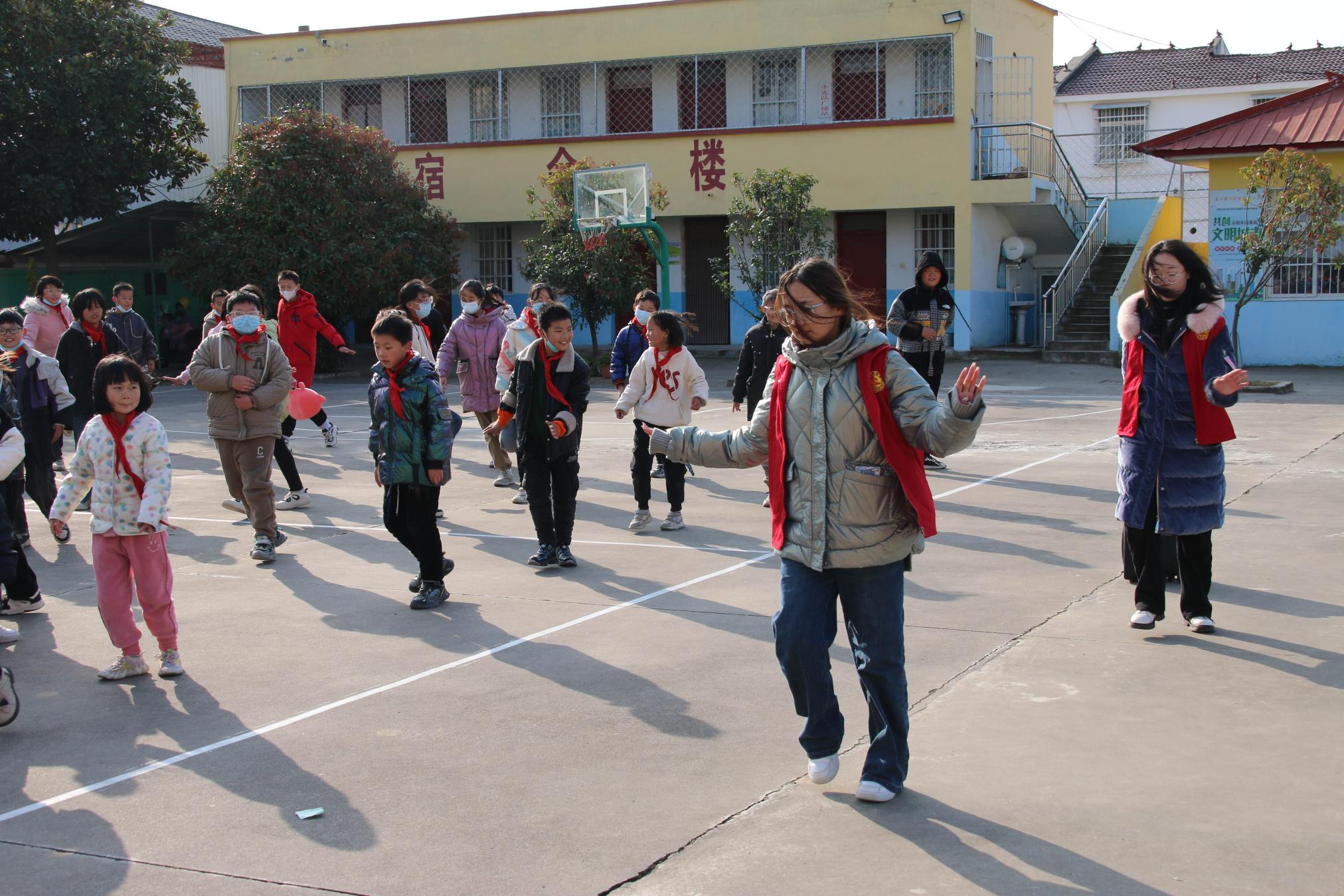 大学生和小学生们一起升国旗、唱国歌,大学生代表作题为“望红旗飞扬,树少年志向”的国旗下演讲,与小朋友们共话理想信念。在“讲文明懂礼仪”主题课堂上,大学生主讲人将传统美德与现代礼仪相结合,通过有趣的案例和丰富的互动开展课堂教学。在艺术课上,大学生们编排民族舞蹈。课后,青马学研社的五位成员带领小学生们进行了有趣的素质拓展,并为小朋友们发放了学习用品和纪念品。