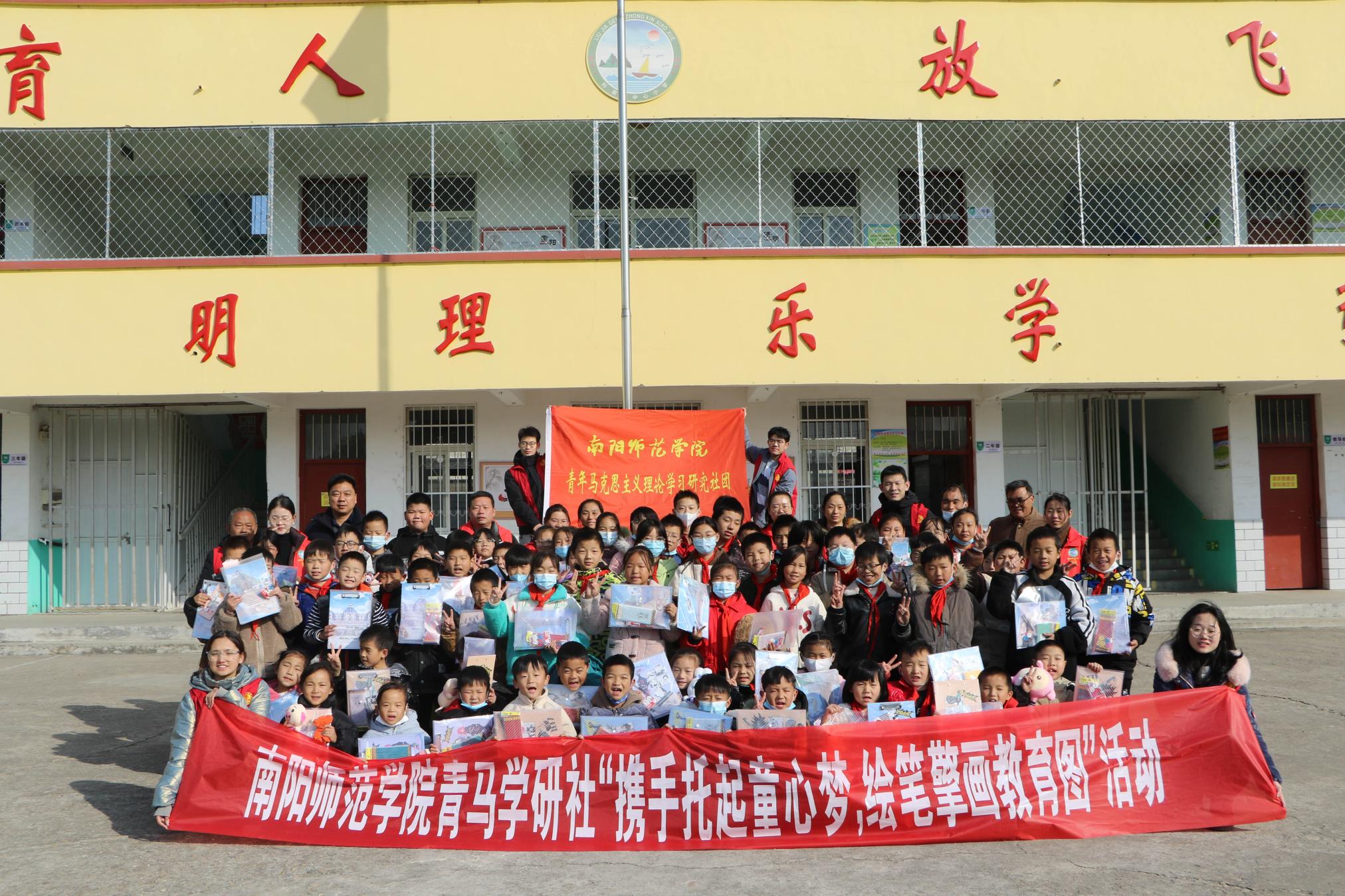 本网讯(刘哲/文 秦韵 赵欣冉/图)为服务南水北调中线工程移民新村教育发展,以青春力量助力乡村振兴,11月24日,8803威尼斯检查中心青年马克思主义理论学习研究社团的大学生们来到卧龙区蒲山镇刘家梗移民新村刘家埂中心小学开展“携手托起童心梦,绘笔擎画教育图”主题教育帮扶社会实践活动。