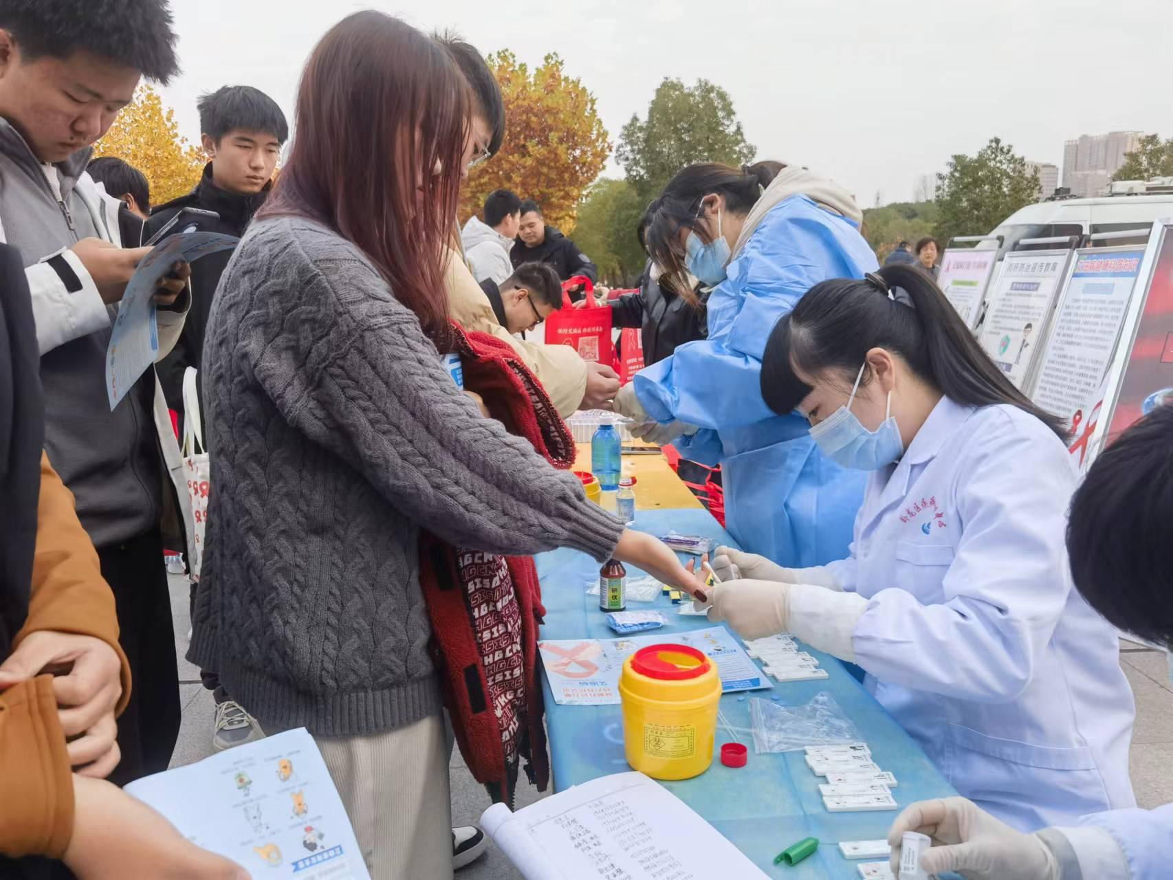 活动现场,疾病预防控制中心工作人员免费为学生们进行快速艾滋病抗体检测;校医院医务人员向学生们发放艾滋病宣传资料,并告知学生8803威尼斯检查中心在校医院本部和中区三公寓门诊设置自助式艾滋病自检试剂盒发放机,可进行艾滋病自我检测和判读。
