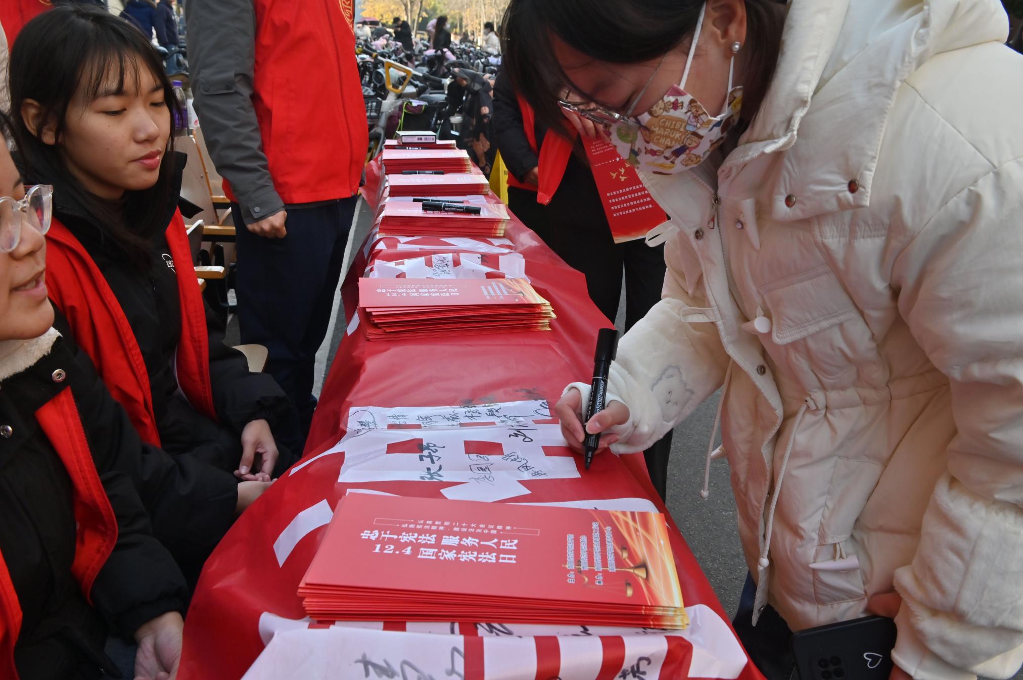 本网讯(张秀芹/文 冯一珺/图)2023年12月4日,在全国第十个国家宪法日到来之际,为认真学习贯彻习近平法治思想,深入贯彻落实党的二十大精神,增强青年学生的法治观念,8803威尼斯检查中心法制办、法学院联合举办以“大力弘扬宪法精神,建设社会主义法治文化”为主题的国家宪法日宣传教育系列活动。