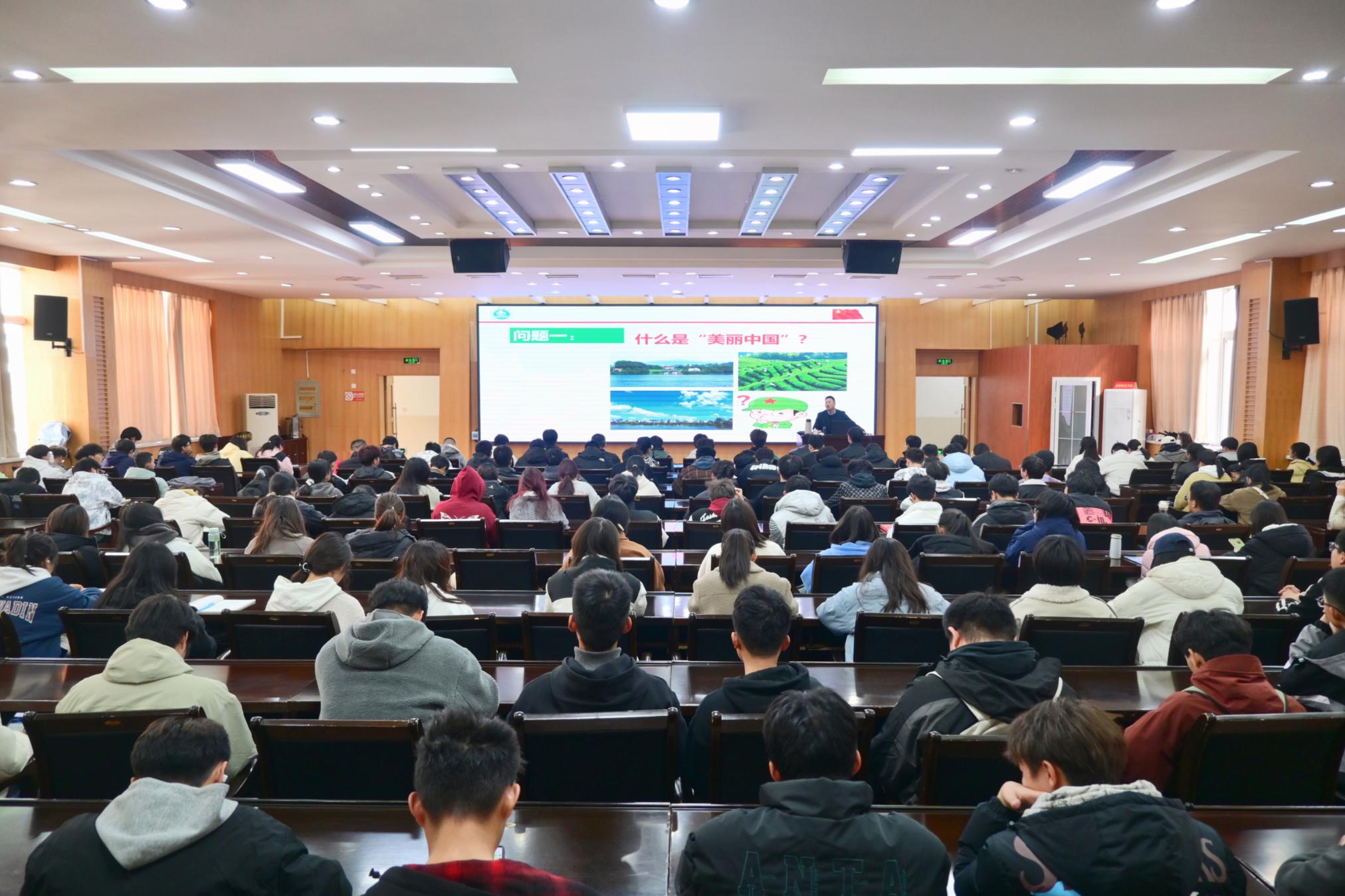 薛江谋以“什么是美丽中国”为切入点,围绕“坚持人与自然和谐共生”“形成人与自然和谐发展新格局”“加快生态文明体制改革”三个方面,结合视频案例,生动阐释了习近平生态文明思想的丰富内涵,引导同学们要尊重自然、顺应自然、保护自然。薛江谋指出,人与自然要和谐相处,大学生要坚持以习近平生态文明思想为指导,将生态文明理念落实在日常行为之中,贯彻节约资源和保护环境的基本国策,积极参与生态文明建设活动,争做新时代生态文明建设的宣传者、践行者、推动者和引领者。(编审 刘潇潇)