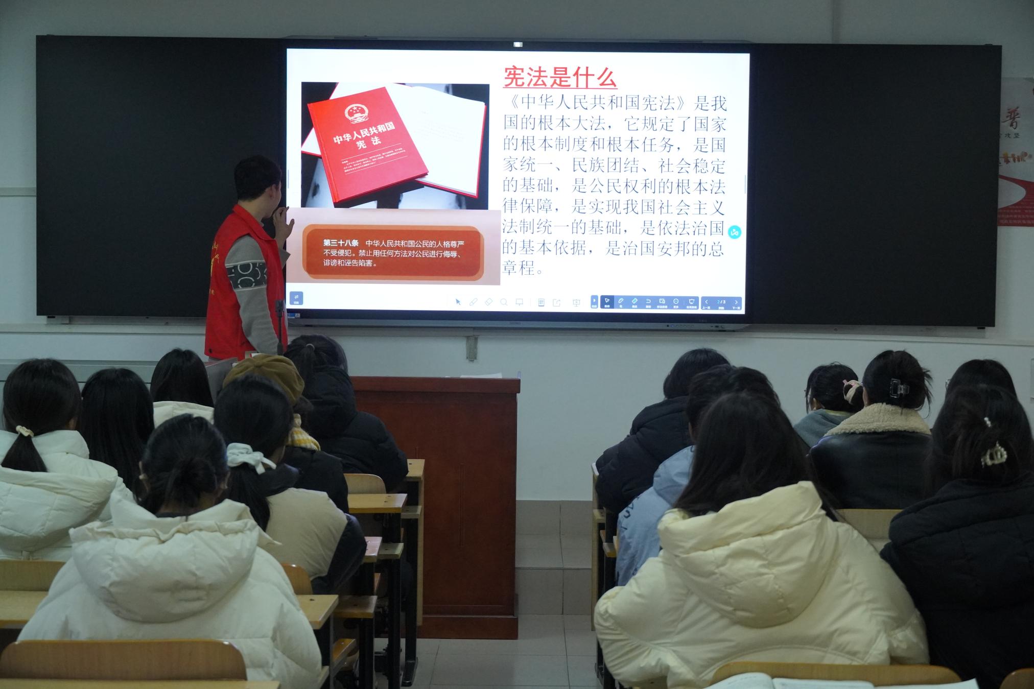 12月15日,文学院在逸夫楼S306教室和中区餐厅门前开展校园普法宣传志愿服务活动。志愿者通过普法小讲堂的形式生动讲解了《民法典》相关法律条文和案例,并开展模拟法庭活动。