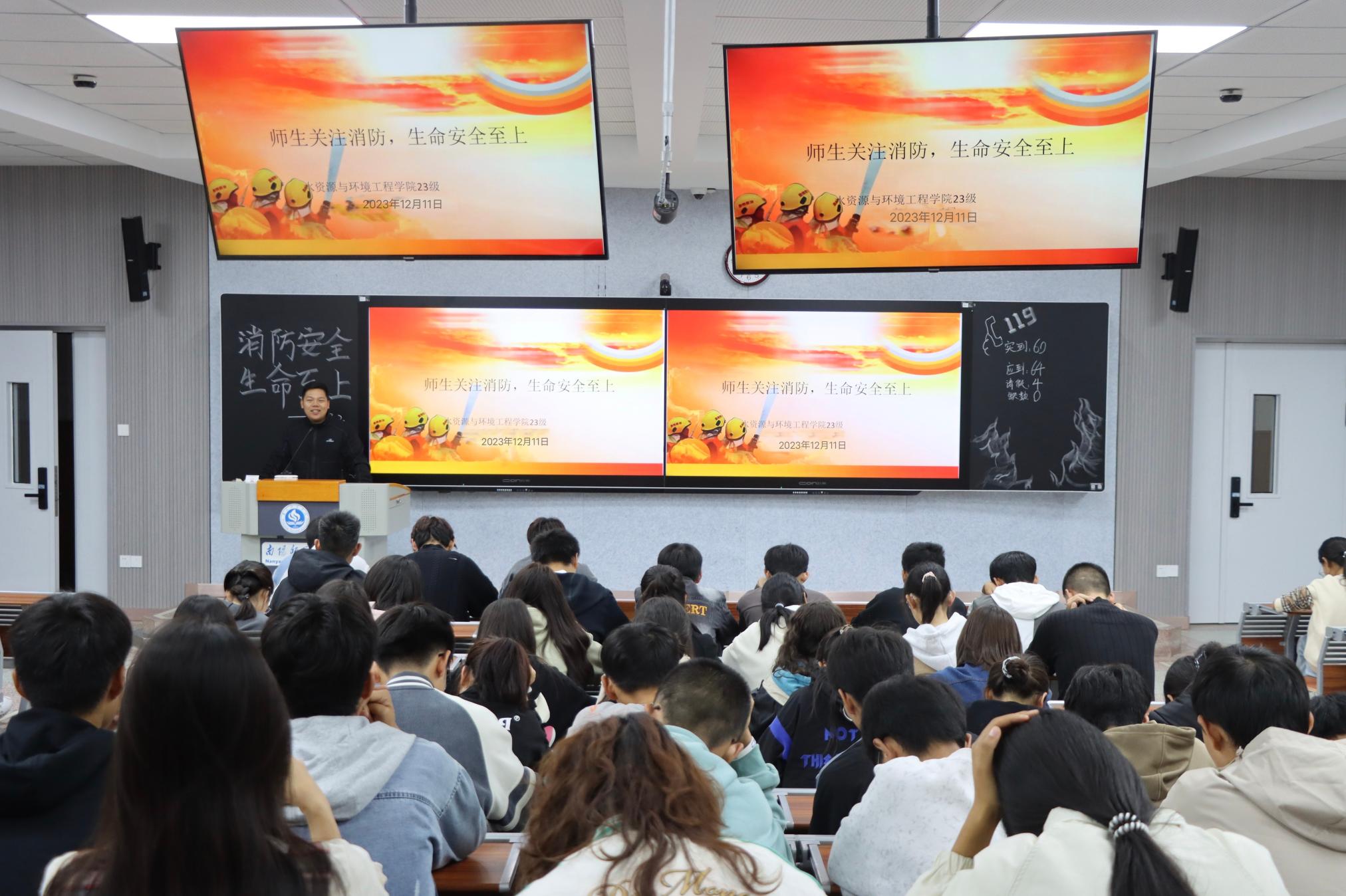 12月11日,水资源与环境工程学院在东区综合楼201教室开展“师生关注消防,生命安全至上”志愿宣讲会。志愿者从安全用火用电、消防灭火方法和火场逃生技巧三个方面向同学们讲解消防安全知识。