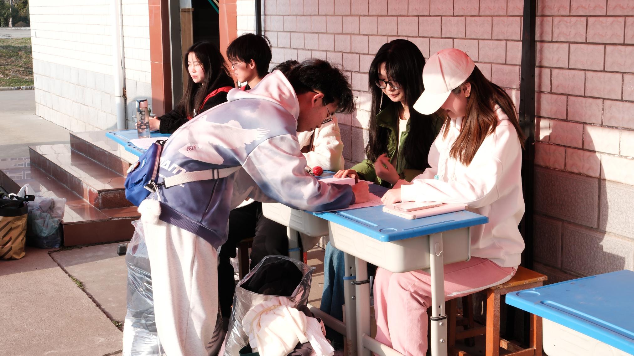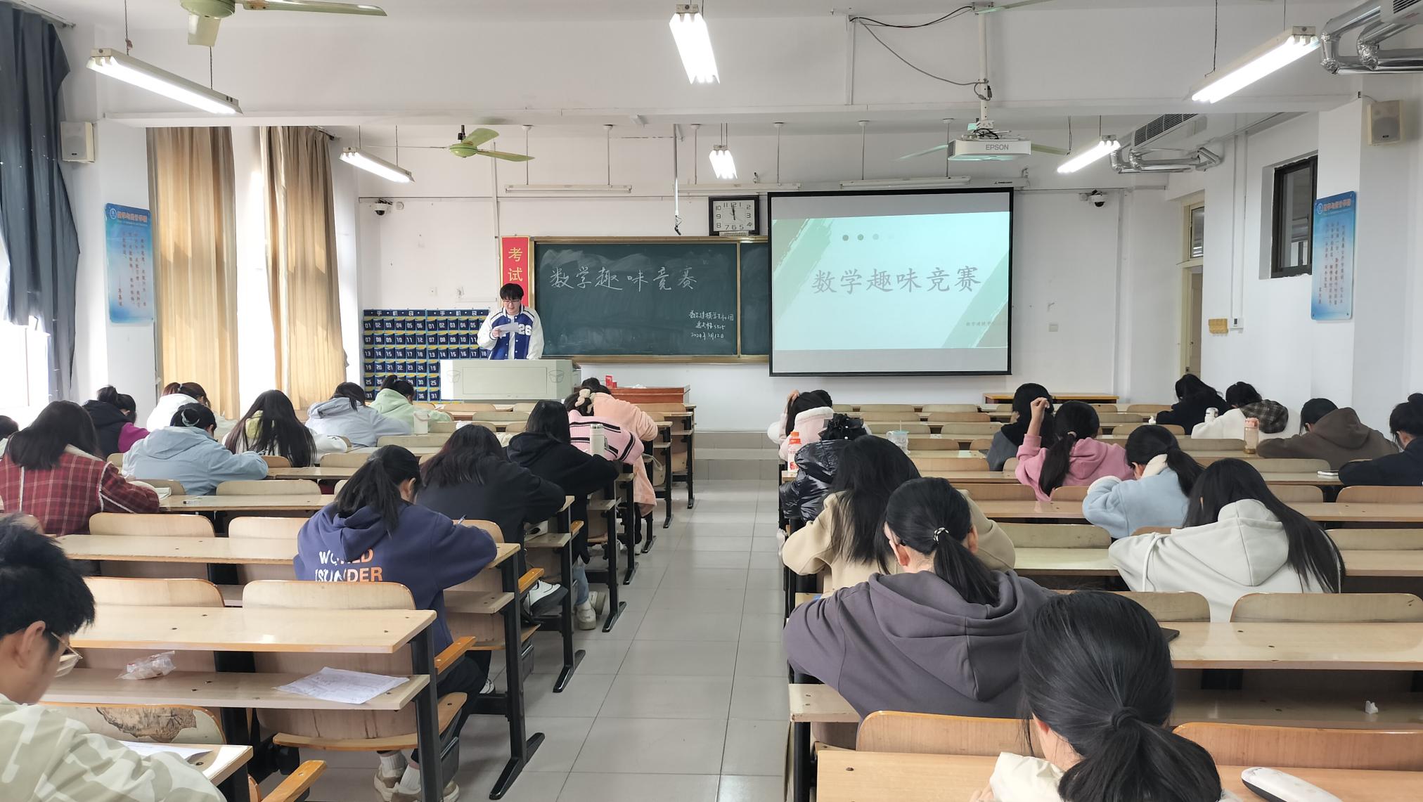 3月12日,数学建模学生社团在逸夫楼S505开展“数学趣味竞赛”活动。活动负责人组织社团成员们排队进入教室,按考试座位依次入座并进行人员信息核查,随后分发试卷开始竞赛考试,考场内氛围安静严肃,成员们认真作答。