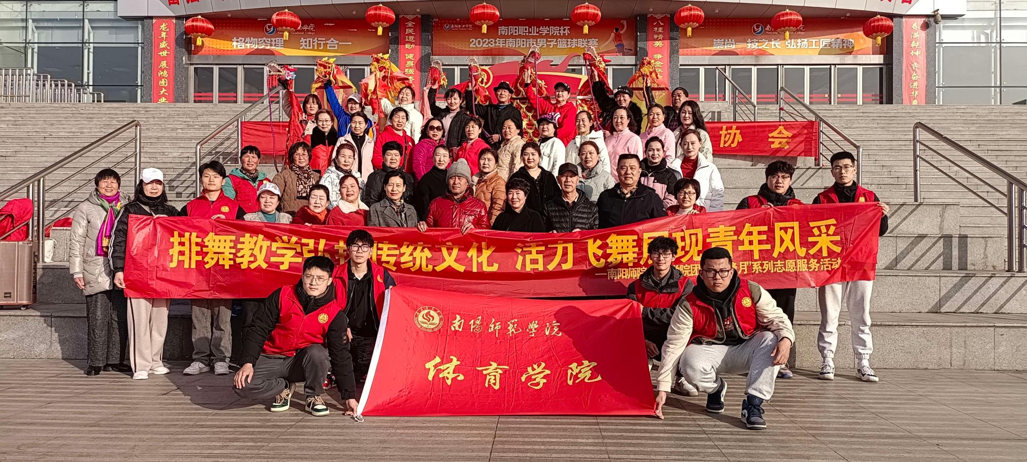 3月11日,排舞广场舞社团在南阳市中心体育馆开展排舞教学志愿活动。在老师的带领下,志愿者们为龙舞及大众健身爱好者讲解健康知识,根据舞蹈基础分组进行动作教学、演练与指导,活动最后表演了健身龙舞《崛起中国龙》。