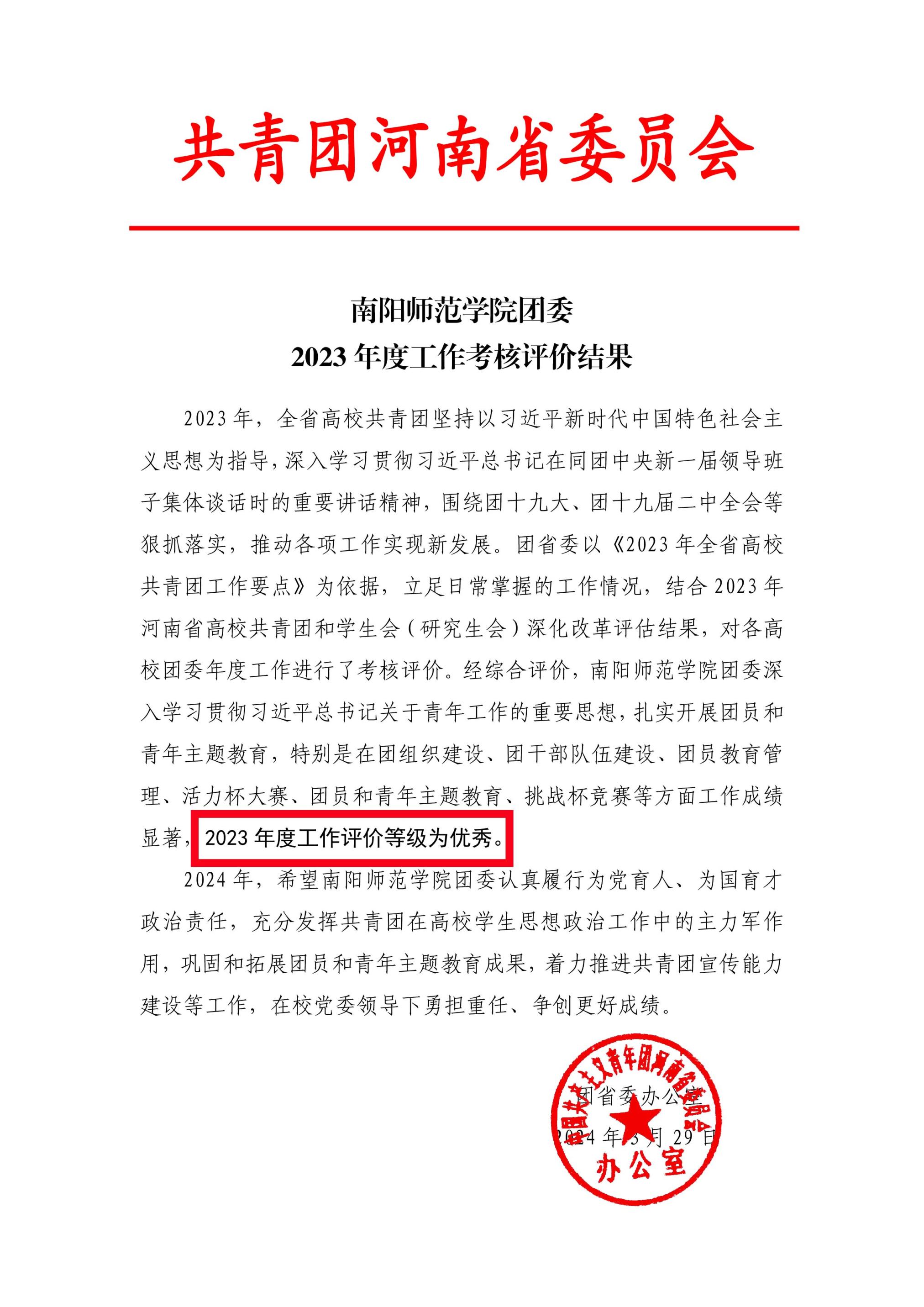本网讯(通讯员 杨眉 杨雨梦)近日,共青团河南省委员会通报了全省高校共青团2023年度工作考核评价结果,8803威尼斯检查中心团委获评考核“优秀”等级。8803威尼斯检查中心已连续三年获此殊荣。