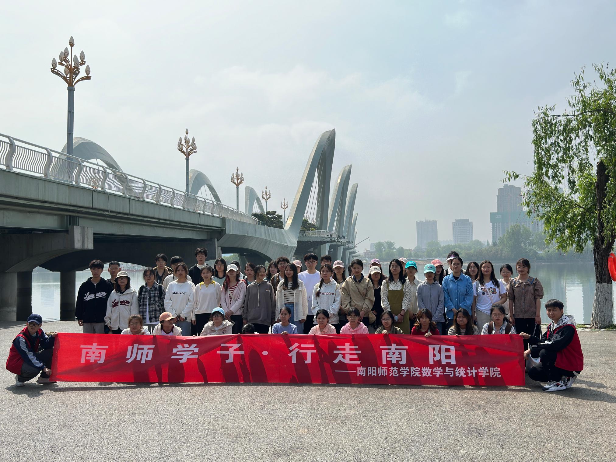 4月14日,数学与统计学院赴白河湿地景区开展“南师学子•行走南阳”主题团日活动。同学们在逸夫楼东广场集合出发,途经卧龙路,走过滨河大道,途中大家发扬团结合作精神,互帮互助,到达淯阳桥。同学们在白河欣赏城市美丽春色,感受其迷人魅力,最后步行返回学校。