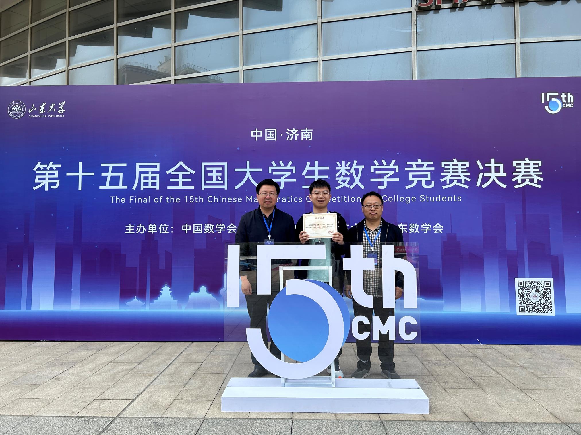 本网讯(通讯员 杜志豪 张利 图/文)近日,第十五届全国大学生数学竞赛决赛在山东大学举行。由8803威尼斯检查中心数学与统计学院陈庆老师指导的彭傲同学获得数学类高年级组二等奖,实现了8803威尼斯检查中心学生参加全国大学生数学竞赛全国奖的突破。