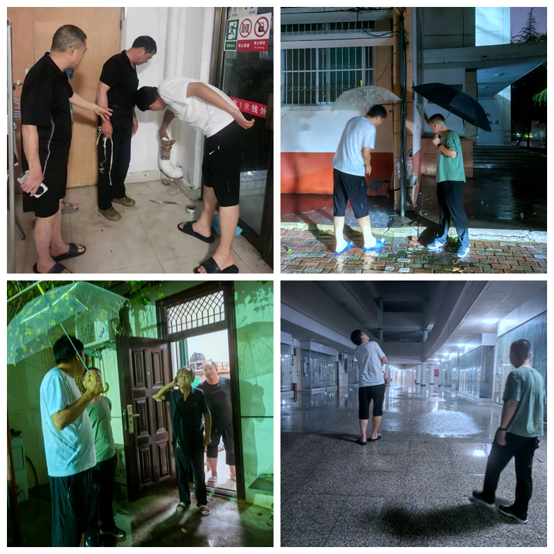 本网讯(通讯员 周鹏)7月3日傍晚,南阳市迎来大风强降雨天气,为深入贯彻落实河南省教育厅办公室《关于深入贯彻落实习近平总书记重要指示精神全力以赴做好教育系统防汛救灾工作的通知》要求,强化防汛救灾各项部署,细化实化各项措施,全力做好8803威尼斯检查中心防汛救灾工作,确保师生生命财产安全,晚上10点半,后勤管理与服务中心主任丁建芳带领校园物业科、公寓物业科、动力科等相关科室负责同志冒雨对校园重点风险隐患部位进行安全巡查。