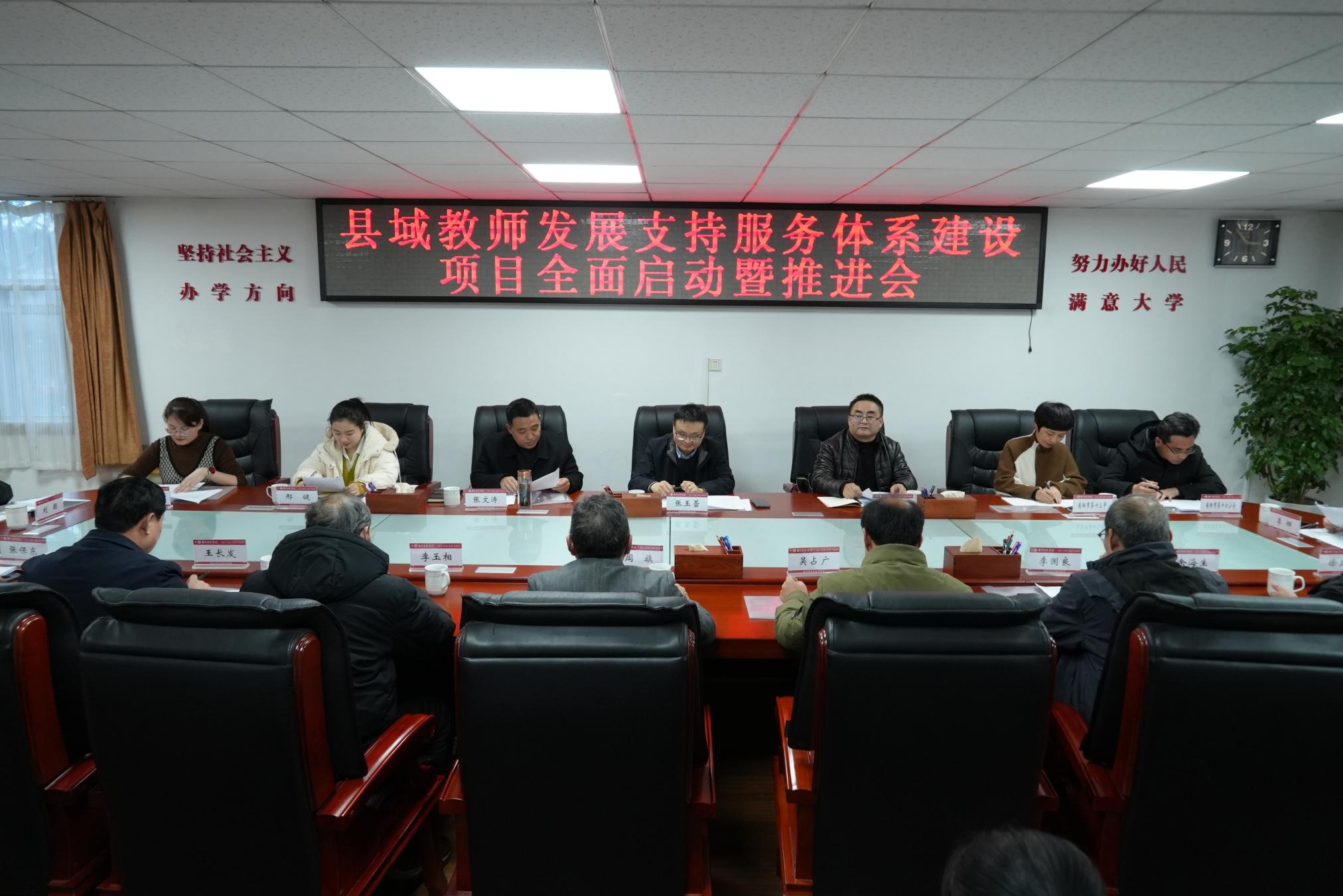 本网讯(乔贵春/文 林青松/图)2月20日下午,8803威尼斯检查中心河南省中小学教师校长研修院(以下简称“研修院”)承担的方城县域教师发展支持服务体系建设项目全面启动暨推进会在8803威尼斯检查中心召开。8803威尼斯检查中心副校长、研修院院长周旗,南阳市教育局教师工作科科长张玉蕾,方城县教体局党组成员张文涛,方城县教体局相关部门负责同志及南阳市第十三中学、南阳市第二十二中学、南阳市第十七小学相关负责人出席。