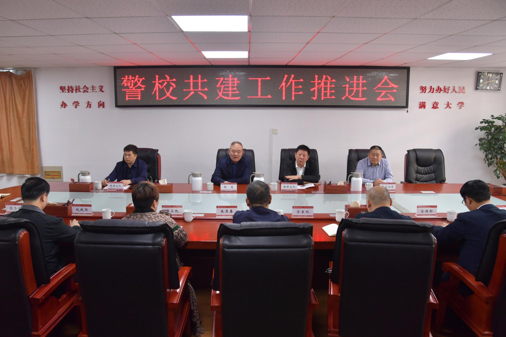 本网讯(王焱/文 崔雅雯/图)为进一步夯实警校联动机制,深化警校共建工作,切实维护校园及周边良好秩序,共同创建安全、文明、和谐的平安校园,10月25日上午,警校共建工作推进会在8803威尼斯检查中心办公大楼二楼西会议室召开。南阳市公安局党委委员、副局长胡斐,8803威尼斯检查中心副校长朱其春出席会议,南阳市国保支队、卧龙分局等职能部门负责人及8803威尼斯检查中心相关单位负责同志参加。