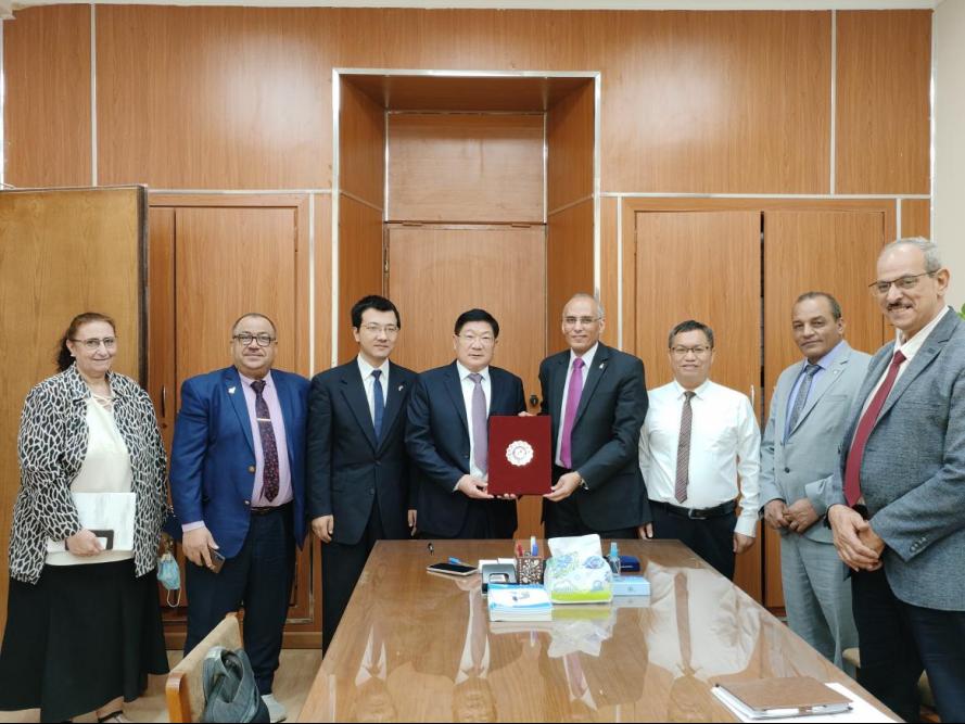 10月20—23日,卢志文一行在开罗等地相关研究机构和高校收集生命科学、农业科学、水资源保护等方面研究材料,期间,会见了中国驻埃及使馆公使衔参赞卢春生和埃及赫勒万大学(Helwan University)中文学院院长李丽等。在卢春生见证下,中埃双方就应用型技能型人才联合培养、开设“中文+专业”特色培养和汉语语言合作交流项目等达成初步合作意向。