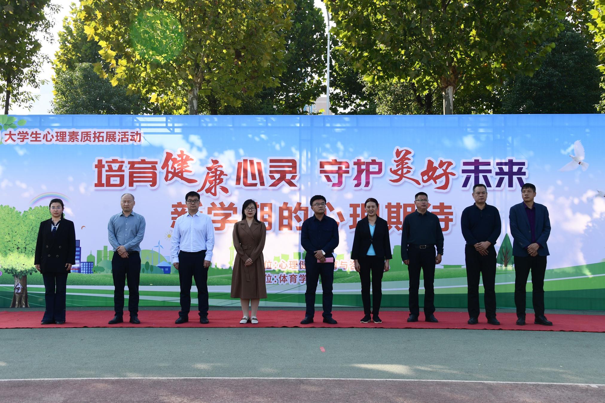本网讯(刘柏涛 徐鸿鹏/文 冯一珺/图)11月1日下午,由学生发展中心(心理健康教育与咨询中心)主办、体育学院承办的心理素质拓展活动在西区素质拓展基地开展,副校长刘红林出席开幕式。党委宣传部、党委学工部、校团委、创新创业学院、体育学院及心理健康教育与咨询中心相关负责人参加。各学院班级心理委员、学生会心理部成员400余人参加此次活动。