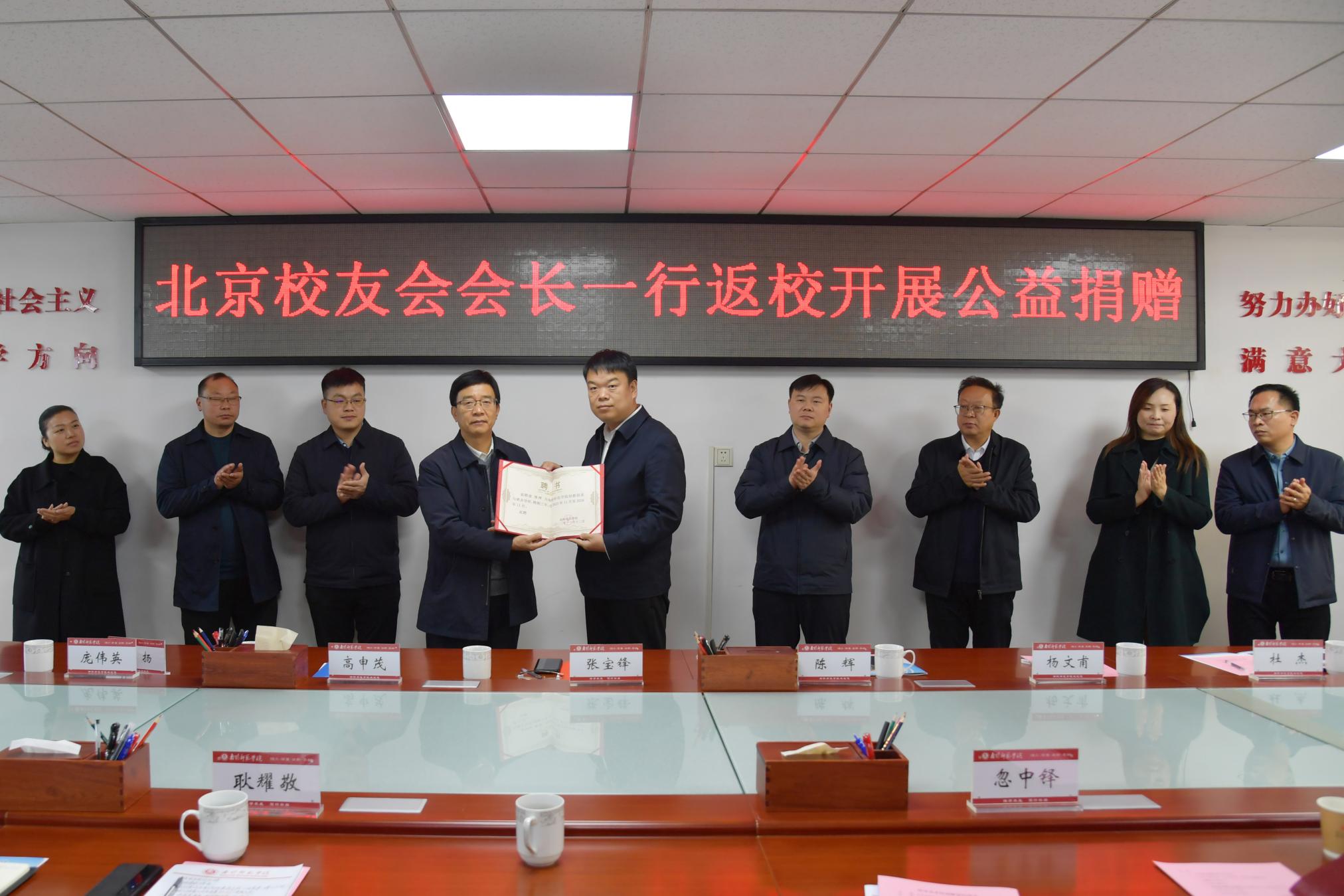 双方签署捐赠协议。张宝锋向陈辉颁发捐赠证书、优秀校友证书和“创新创业导师”聘书。(编审 席晓丽)