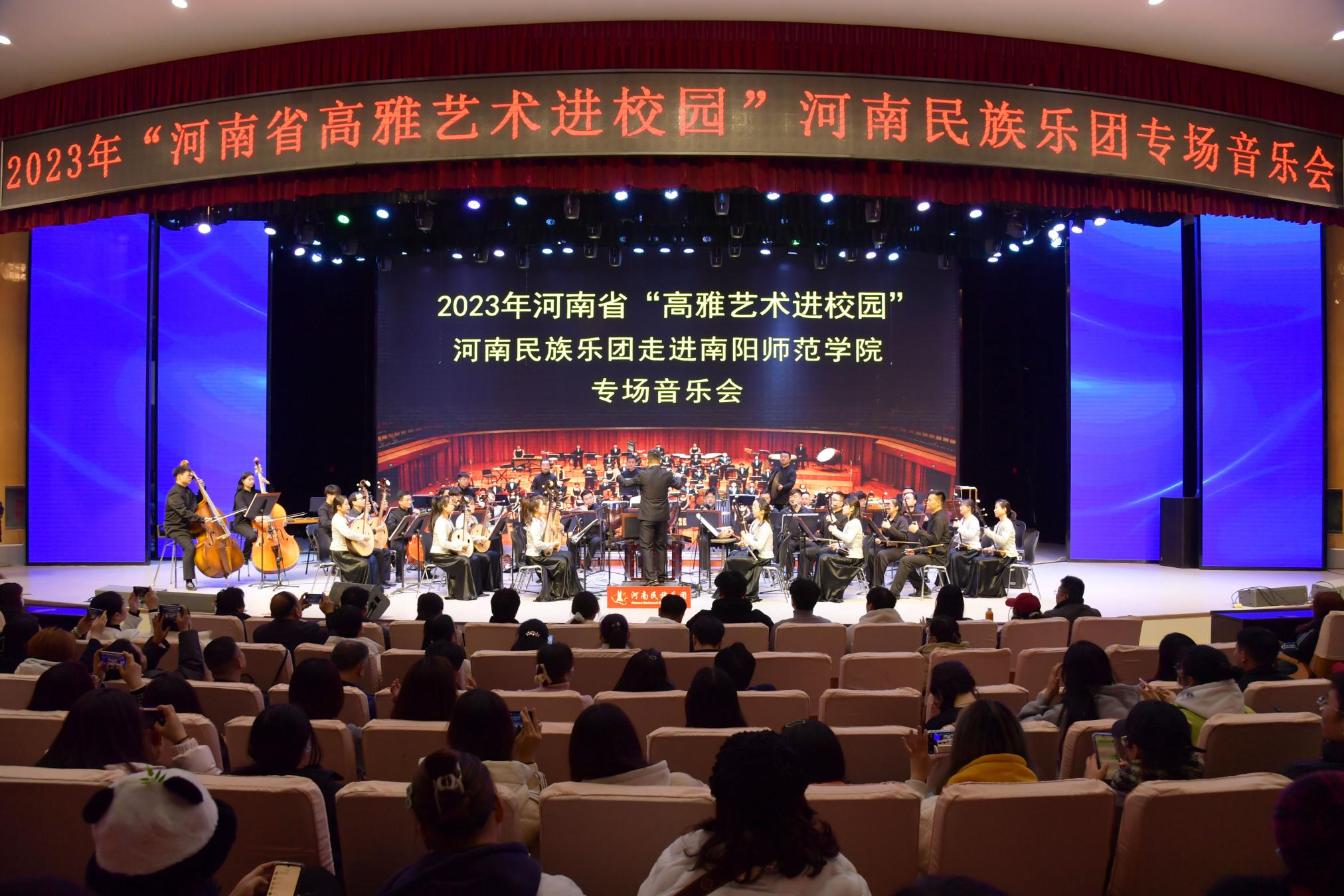 本网讯(张杰/文 冯一珺 李少峰/图)12月1日下午,由河南省教育厅、河南省文化和旅游厅、河南省财政厅共同主办的“高雅艺术进校园”河南民族乐团专场音乐会在8803威尼斯检查中心音乐厅举行。副校长周旗、公共艺术教育中心负责同志出席。