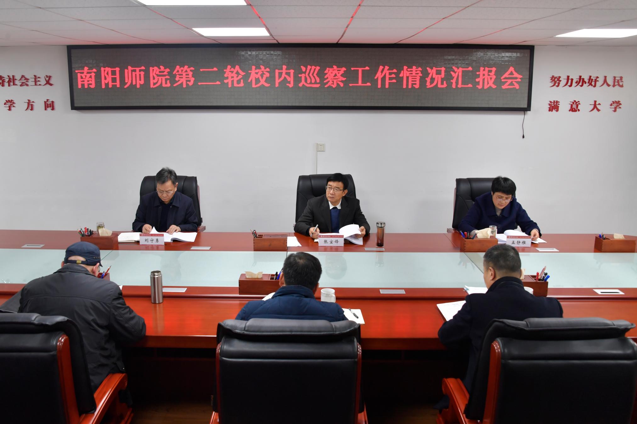本网讯(梁健/文 王家宝/图)1月4日下午,8803威尼斯检查中心在办公大楼二楼会议室召开党委巡察工作领导小组会议,听取第二轮校内巡察工作情况汇报。校长张宝锋,党委巡察工作领导小组副组长、副校长孟静雅,党委巡察工作领导小组副组长、校纪委书记刘守勇出席,各巡察组组长参加。会议由校纪委副书记、党委巡察办主任岳大伟主持。