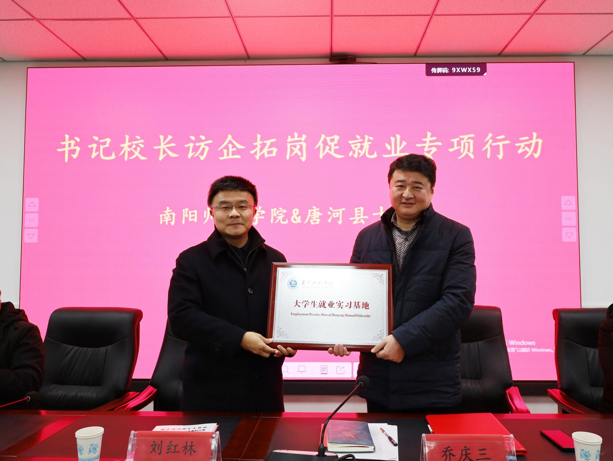 本网讯(通讯员 徐照波)1月9日下午,副校长刘红林带领教务处、就业指导与服务中心、学生社区管理委员会、地理科学与旅游学院、智能制造与电气工程学院负责同志赴唐河县开展访企拓岗促就业专项行动。