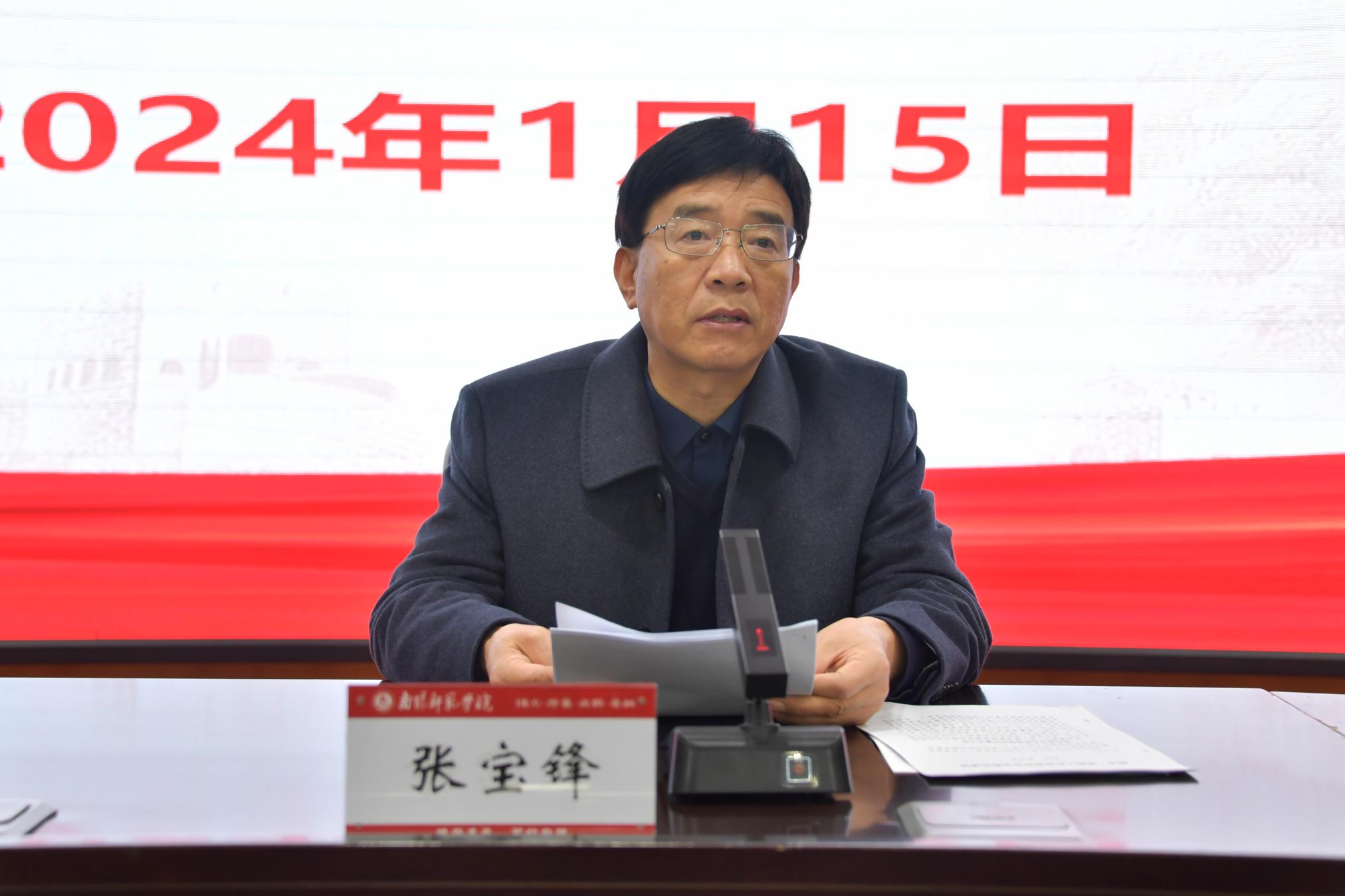 校长张宝锋作总结和点评讲话。他回顾了2023年学校取得的优异成绩,代表学校党委向全校教职员工表示衷心感谢,对各二级党组织书记2023年度抓基层党建工作逐一进行了点评,在肯定成绩的同时,也指出了不足,并对抓实2024年基层党建工作提了四点要求:一是要加强政治理论武装,坚持不懈用习近平新时代中国特色社会主义思想凝心铸魂;二是要夯实基层组织建设,进一步增强基层党组织政治功能和组织功能;三是要巩固深化主题教育成果,以高质量党建引领学校事业高质量发展;四是要抓实党性党风教育,推进全面从严治党、党风廉政建设向纵深发展。最后,他对寒假期间各单位的重点工作进行了安排部署,强调了假期校园、师生安全与稳定工作。