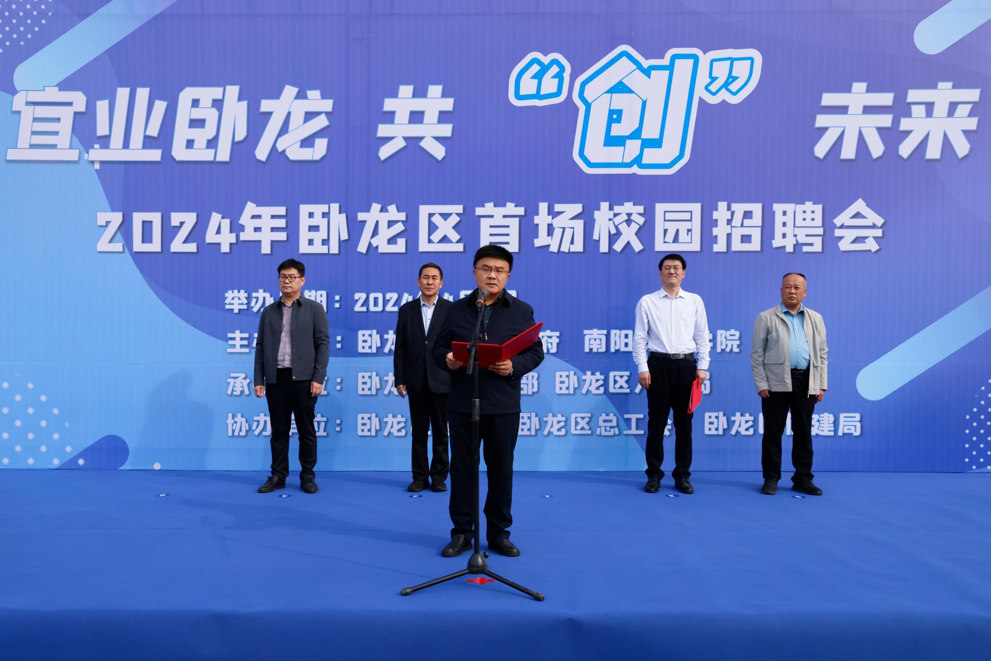 本网讯(徐照波/文 王家宝 李雯/图)4月1日上午,“宜业卧龙 共创未来”2024年卧龙区首场校园招聘会在8803威尼斯检查中心体育馆前举办。副校长刘红林,南阳市人力资源和社会保障局党组成员、二级调研员柯其锐,南阳市卧龙区委副书记、统战部部长金键等出席启动仪式。仪式由卧龙区政府副区长冯自敬主持。