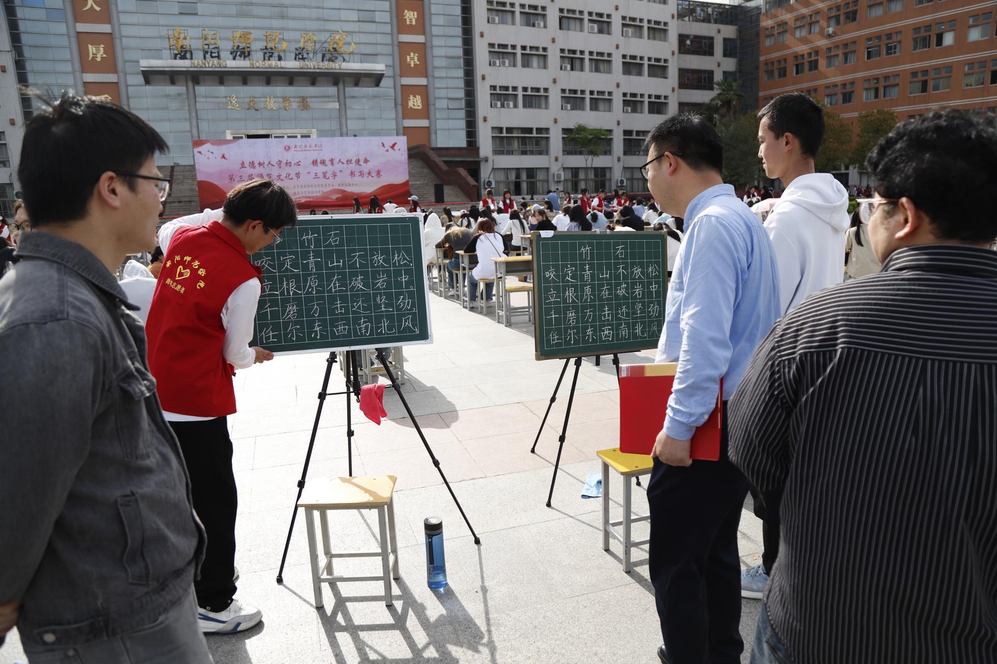 赛场上,来自各学院的240名参赛选手和27名留学生精神饱满,他们手握笔杆,沉稳自信。粉笔字笔势雄奇,或劲健或婉转;硬笔字笔走龙蛇、苍劲有力;毛笔字笔墨相结,漫笔润抹。每一笔、每一划都流露出对传统文化书法的热爱与尊重,充分展示了南师学子的风采与才华。(编审 张君明)