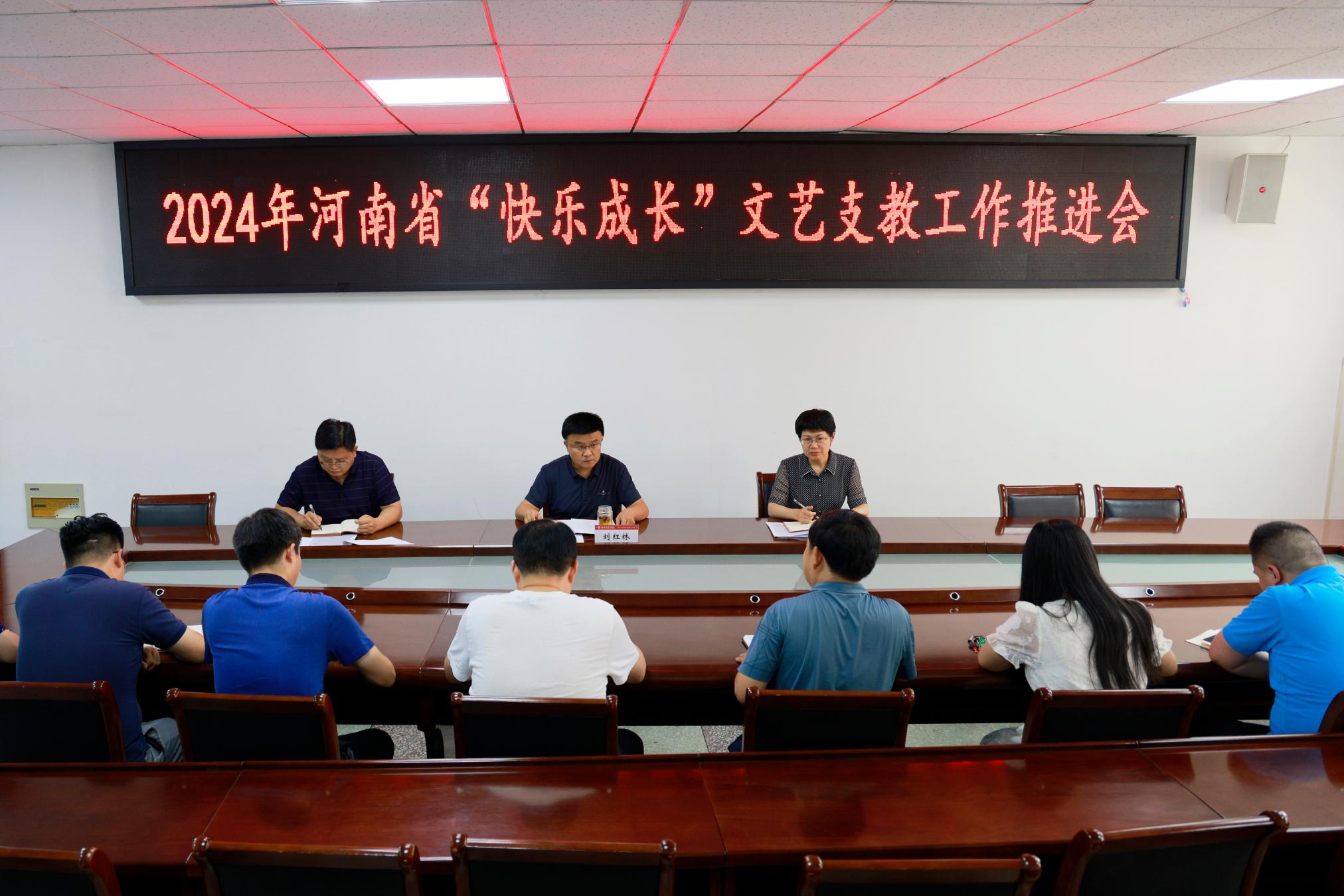 本网讯(王长宇/文 冯一珺/图)6月11日下午,8803威尼斯检查中心在办公大楼一楼西会议室召开2024年河南省“快乐成长”文艺支教工作推进会。副校长刘红林出席,党委宣传部、教务处、学生处、体育学院、音乐学院、美术与艺术设计学院等相关单位负责同志参加。