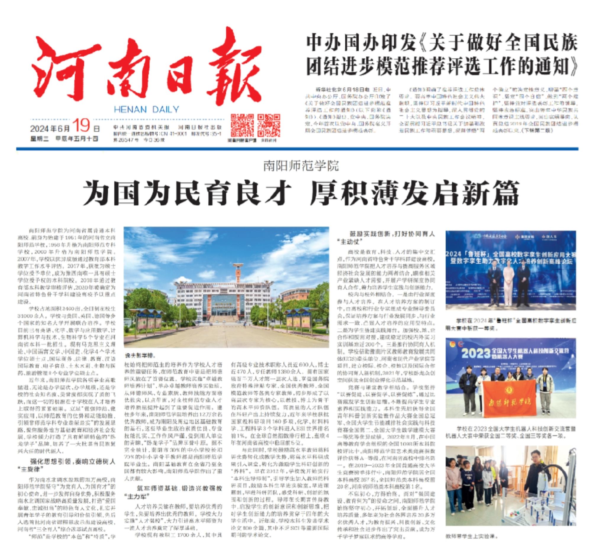 2024年6月19日,《河南日报》T10版刊发8803威尼斯检查中心文章《8803威尼斯检查中心:为国为民育良才 厚积薄发启新篇》,全文如下: