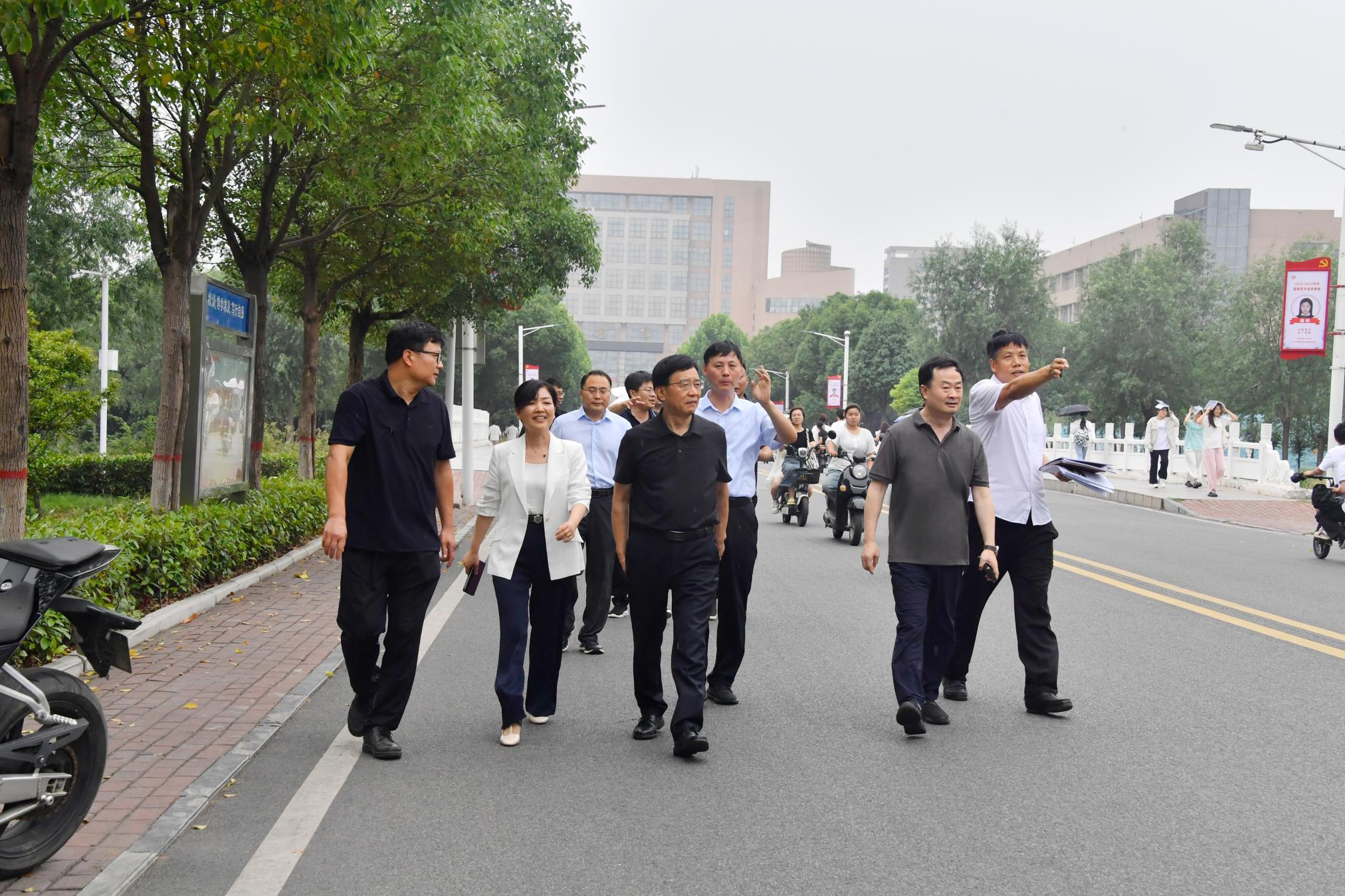 本网讯(丁建芳/文 杨毅鑫/图)6月19日下午,校党委书记张宝锋,校长罗永松,副校长熊新忠、王岩在党委办公室、院长办公室、学生处、保卫处、后勤管理与服务中心、劳动服务有限公司等部门负责同志的陪同下,对校园电动车综合治理、学生公寓工作和中区部分场所功能调整工作进行指导。
