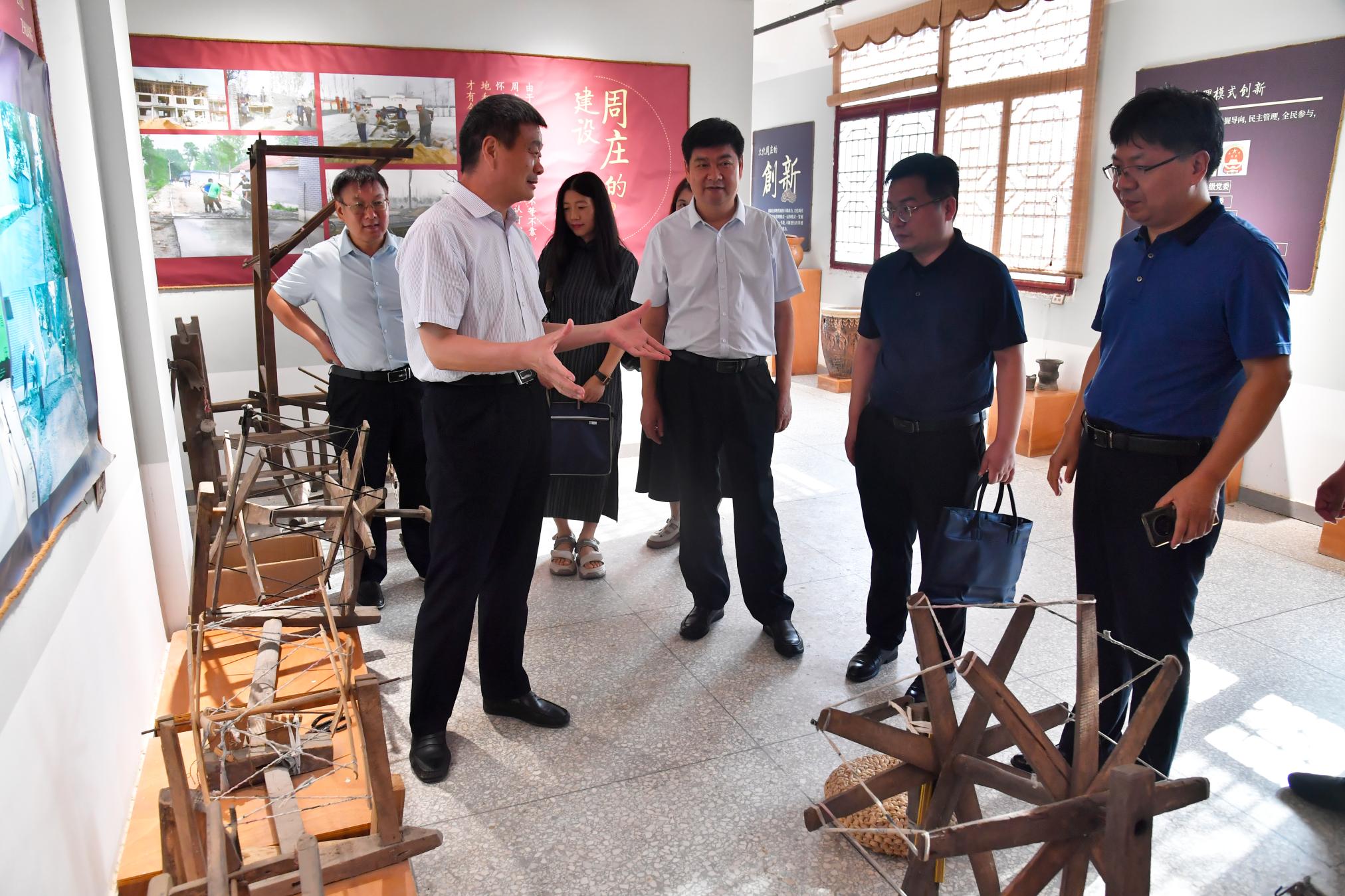 谢海泉一行考察了周庄村文化大礼堂、兰馨茶社、乡村大舞台、女子工坊、周同宾故居等地,并与当地居民深入交流。在“社旗县周庄村旅游发展”座谈会上,谢海泉介绍了8803威尼斯检查中心与社旗县校地帮扶工作开展情况。他指出,周庄村是南阳著名作家周同宾的故乡,是具有浓郁乡村民俗文化的传统村落,传统香囊制作非常有特色,要求8803威尼斯检查中心旅游规划团队结合周庄村发展旅游的优势,深入调研,为周庄村省级康养示范村的建设提供智力支持。