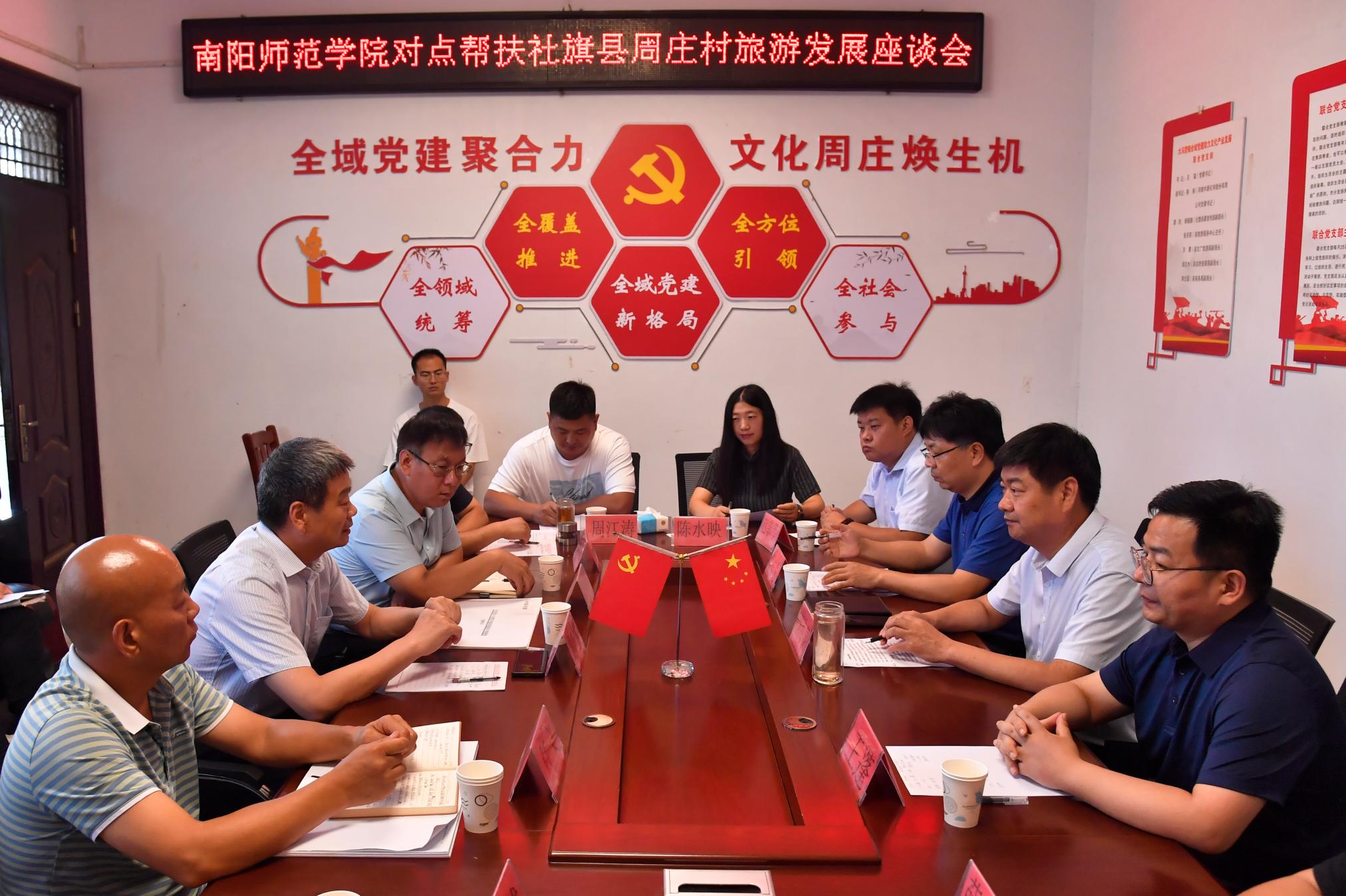 赵向龙对谢海泉一行表示诚挚的欢迎,对学校长期给予社旗的大力支持表示衷心感谢。双方就周庄村旅游发展规划的优化提升、校地全方位合作进行了深入探讨。(编审 张君明)