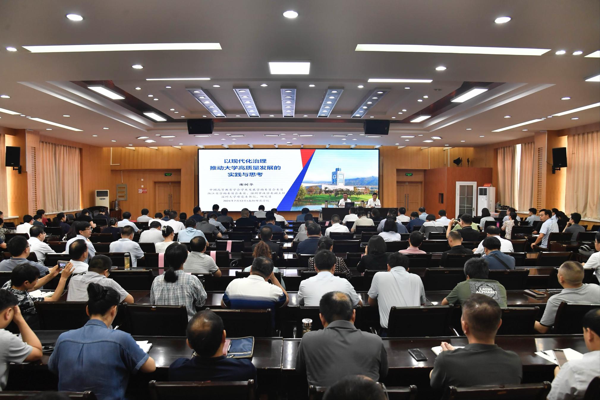 谢树华以《以现代化治理推进大学高质量发展》为题,从办学定位、奋斗目标、综合改革、内涵建设等四个方面,以生动的语言和丰富的案例,深入阐述了地方高校以现代化治理推动高质量发展的经验做法,提出了“一个定位明方向、三大目标聚人心、三项改革促发展、四项建设强内涵”的发展策略。