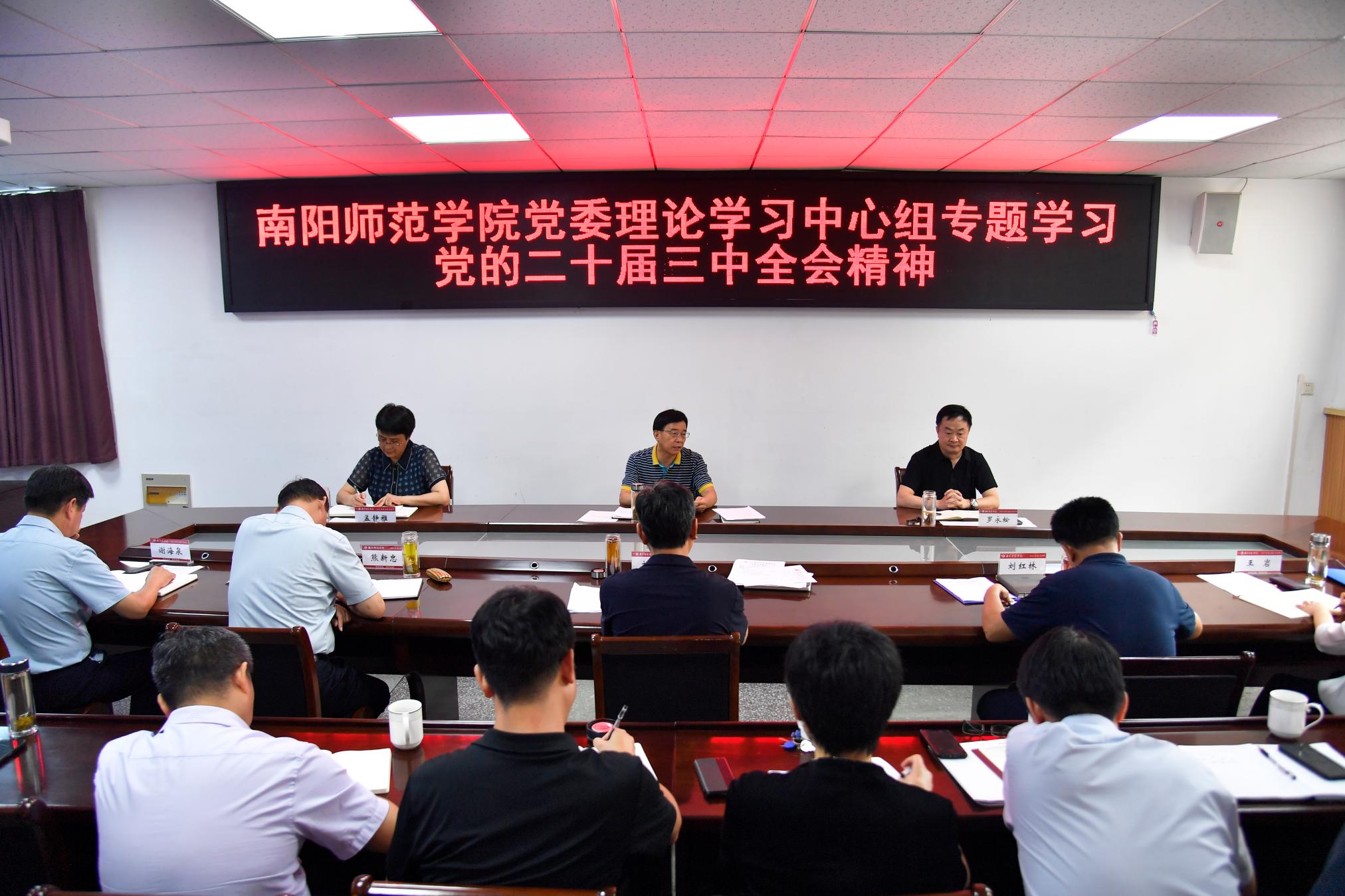 张宝锋强调,学习宣传贯彻好党的二十届三中全会精神,是当前和今后一个时期的首要政治任务。一要提高政治站位,深刻领会全会的精神实质。要从坚定拥护“两个确立”、坚决做到“两个维护”的政治高度,切实增强学习宣传贯彻全会精神的政治自觉、思想自觉、行动自觉,更加自觉地把改革摆在突出位置,准确把握进一步全面深化改革的主题、重大原则、重大举措、根本保证,坚持原原本本学、全面系统学、深入思考学、联系实际学、融会贯通学,努力掌握全会精神的丰富内涵和核心要义。二要强化组织领导,迅速掀起学习宣传贯彻全会精神的热潮。各级党组织要广泛利用“第一议题”、中心组学习以及“三会一课”等形式,及时组织传达学习全会精神,深入开展交流研讨。要依托社科平台,充分发挥哲学社会科学工作者和思政课教师等的作用,深化全会精神的理论研究和解读阐释。要精心遴选政治素质好、理论水平高、宣讲能力强的精干力量,深入基层一线,开展面向师生的对象化、分众化、互动化宣讲。要充分利用校内各种宣传平台,有重点有针对性加大宣传和解读力度,营造良好氛围。三要聚焦深化改革,着力推动学校事业高质量发展。围绕“师范根基深厚、应用特色鲜明的高水平师范大学”的办学定位,锚定“更名大学和博士学位授予单位”两大目标,发挥改革的突破性和先导性作用,着力在高素质人才培养、优势学科建设、师资队伍建设和高水平科研成果等方面实现新的突破,全面促进教育链、人才链与产业链、创新链有机衔接,努力在推进科技创新与产业创新深度融合,服务地方基础教育和经济社会发展,以及培养德智体美劳全面发展的时代新人等方面作出新的更大贡献,在新征程上谱写高等教育现代化新篇章。(编审 席晓丽)