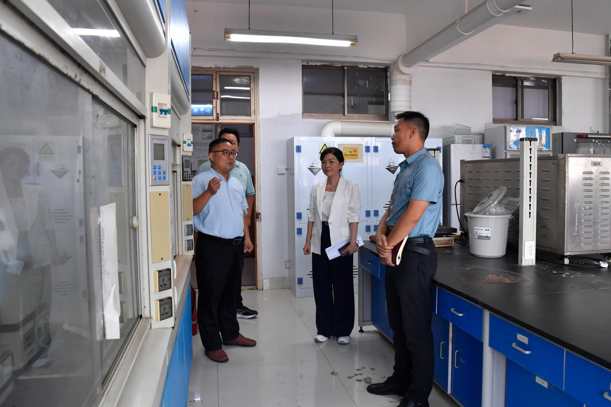 检查组一行先后检查了实验室、危化品仓库、印刷厂、餐厅、公寓、超市以及实训大楼施工现场等重点场所。王岩在检查过程中详细询问了各个单位的安全管理情况以及存在的困难和问题,要求相关单位针对检查中发现的问题立即进行整改,并进一步完善安全管理制度。