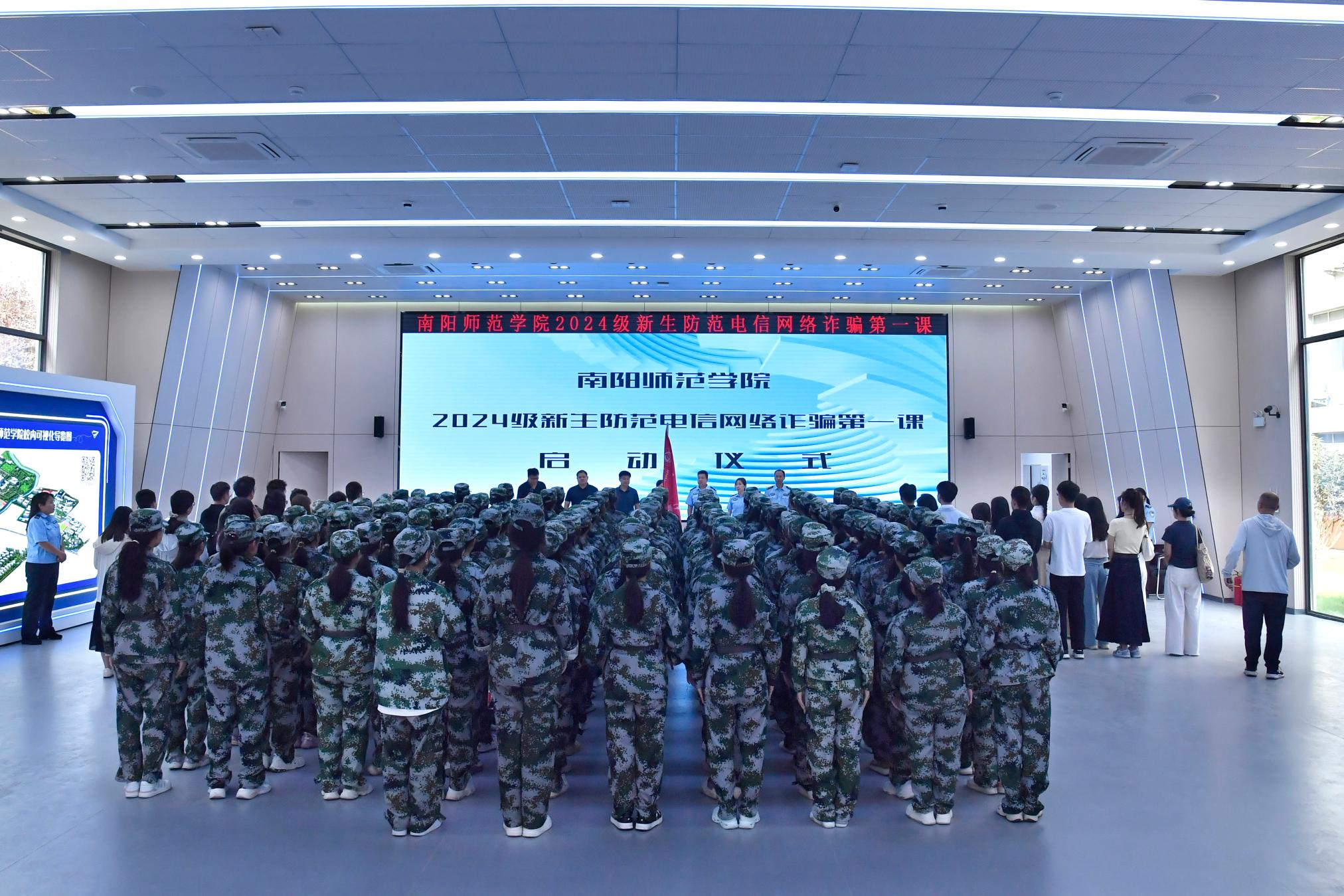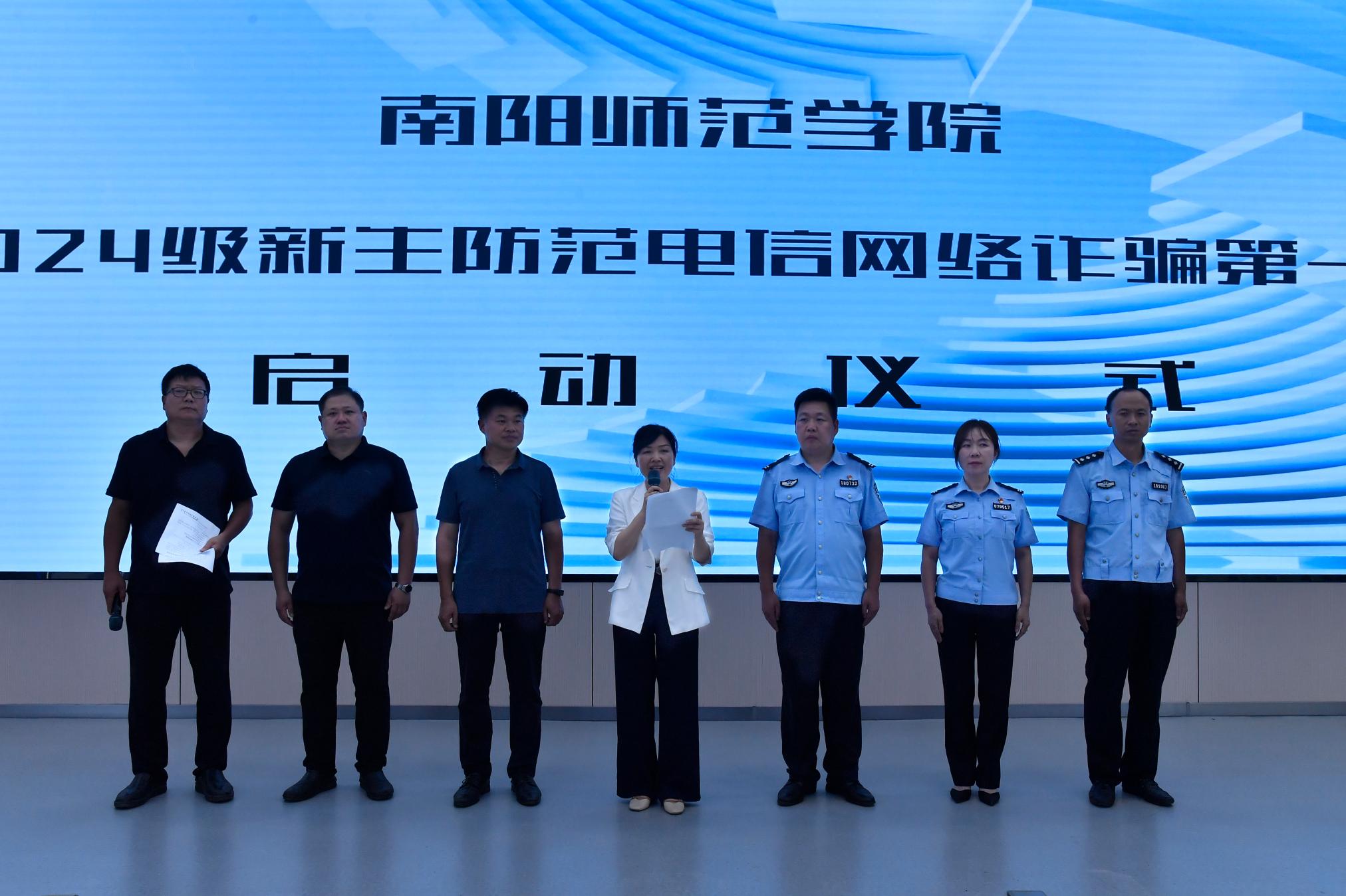 本网讯(王华根/文 张莹方/图)为广泛开展防范电信网络诈骗宣传,有效遏制校园电信诈骗案件多发态势,增强8803威尼斯检查中心师生电信诈骗防范能力,9月14日下午,8803威尼斯检查中心在科技大楼校园信息化展示大厅举行2024级新生防范电信网络诈骗宣传系列活动启动仪式。副校长王岩出席,南阳市卧龙公安分局治安大队、武侯派出所、学校相关单位负责人及2024级新生辅导员参加。